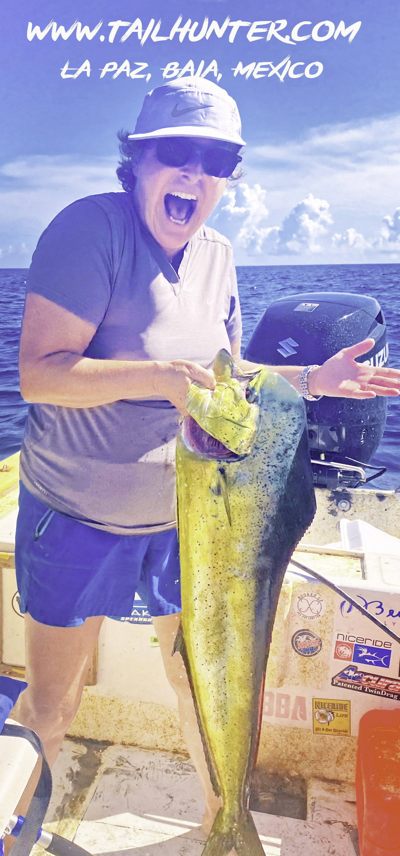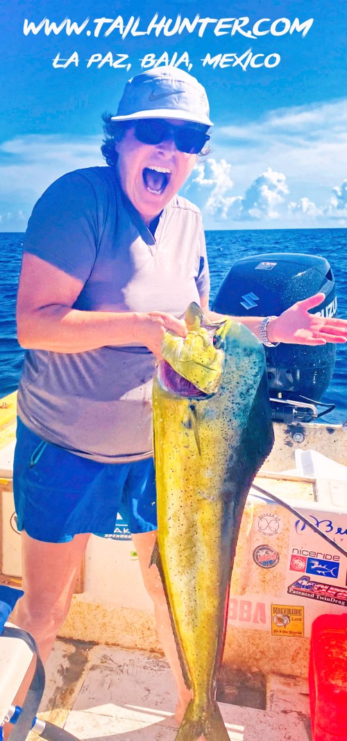 Jeanne Cabales had to cancel her yearly trip last year, but is always fun to have visit. She’s pretty excited about these nice dorado. Jeanne is from San Diego.