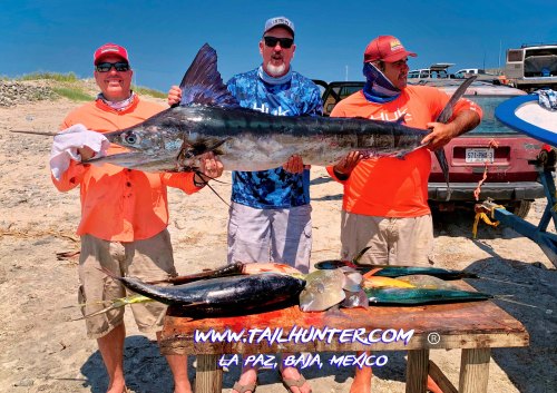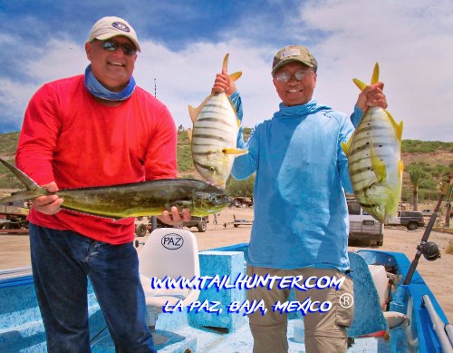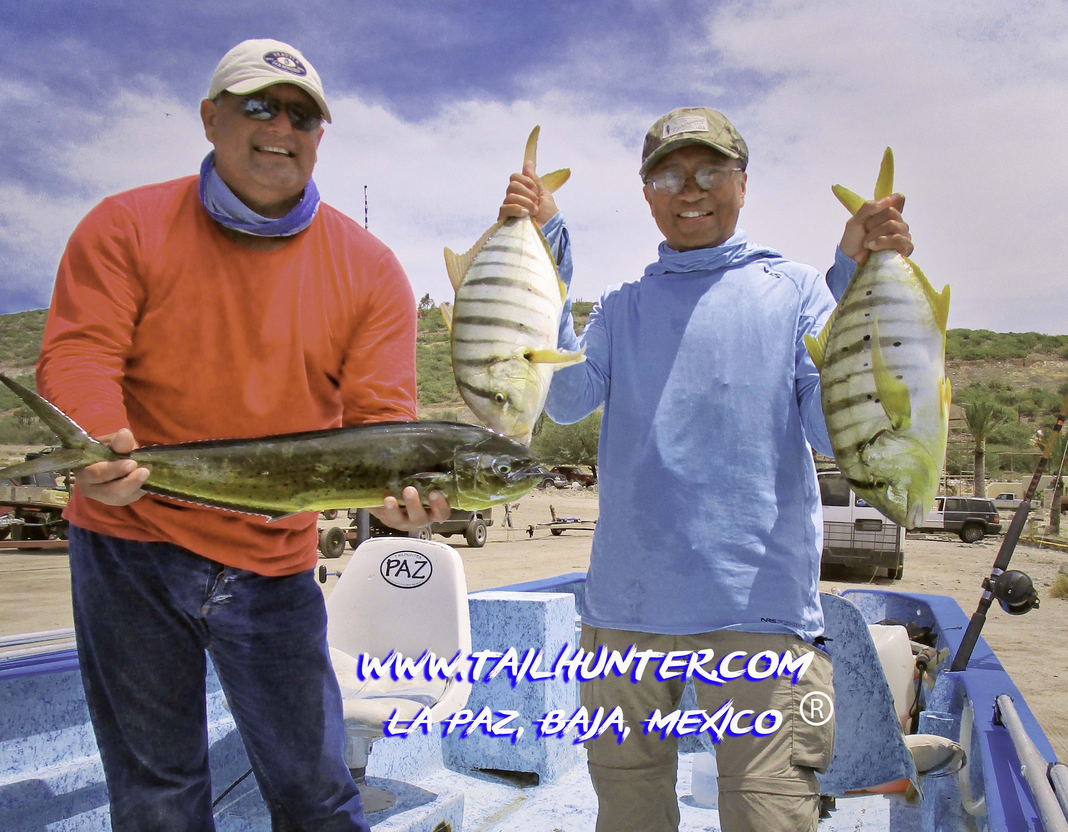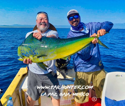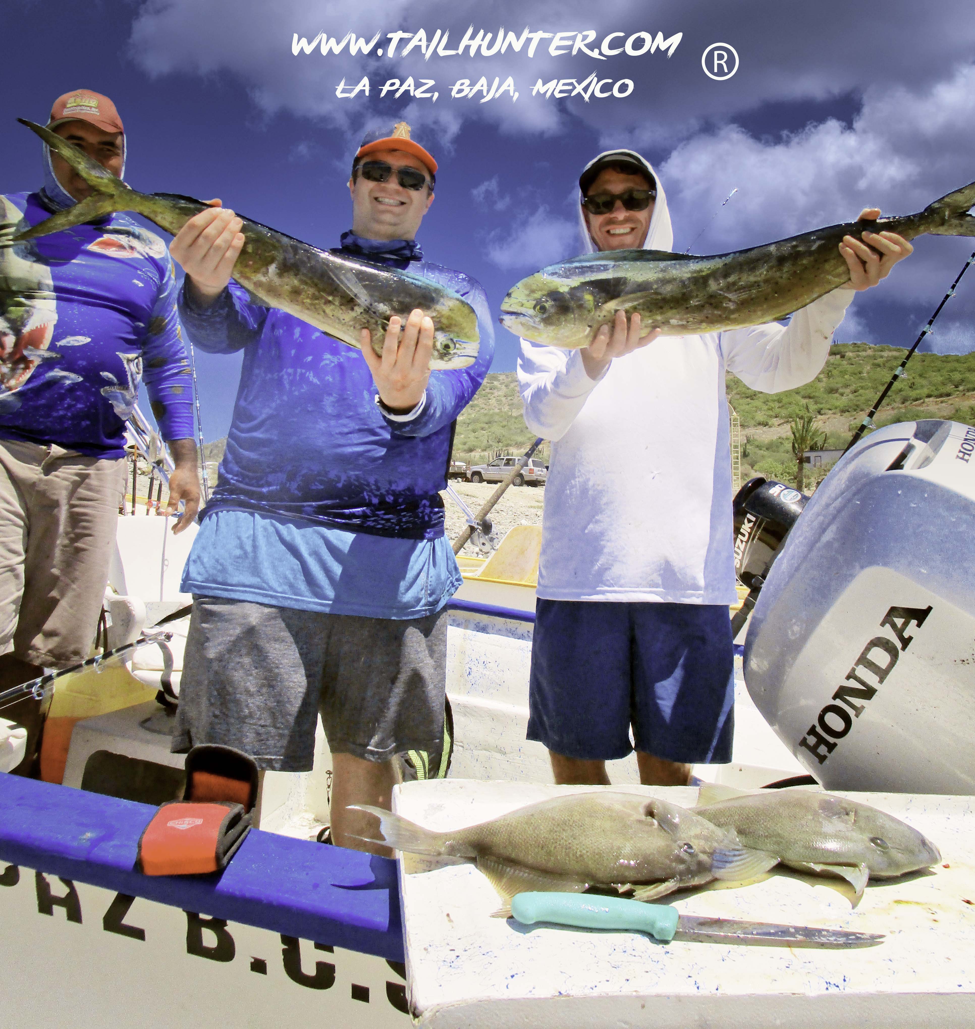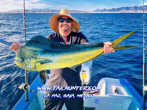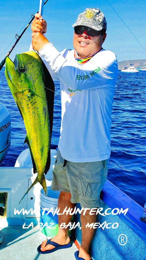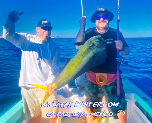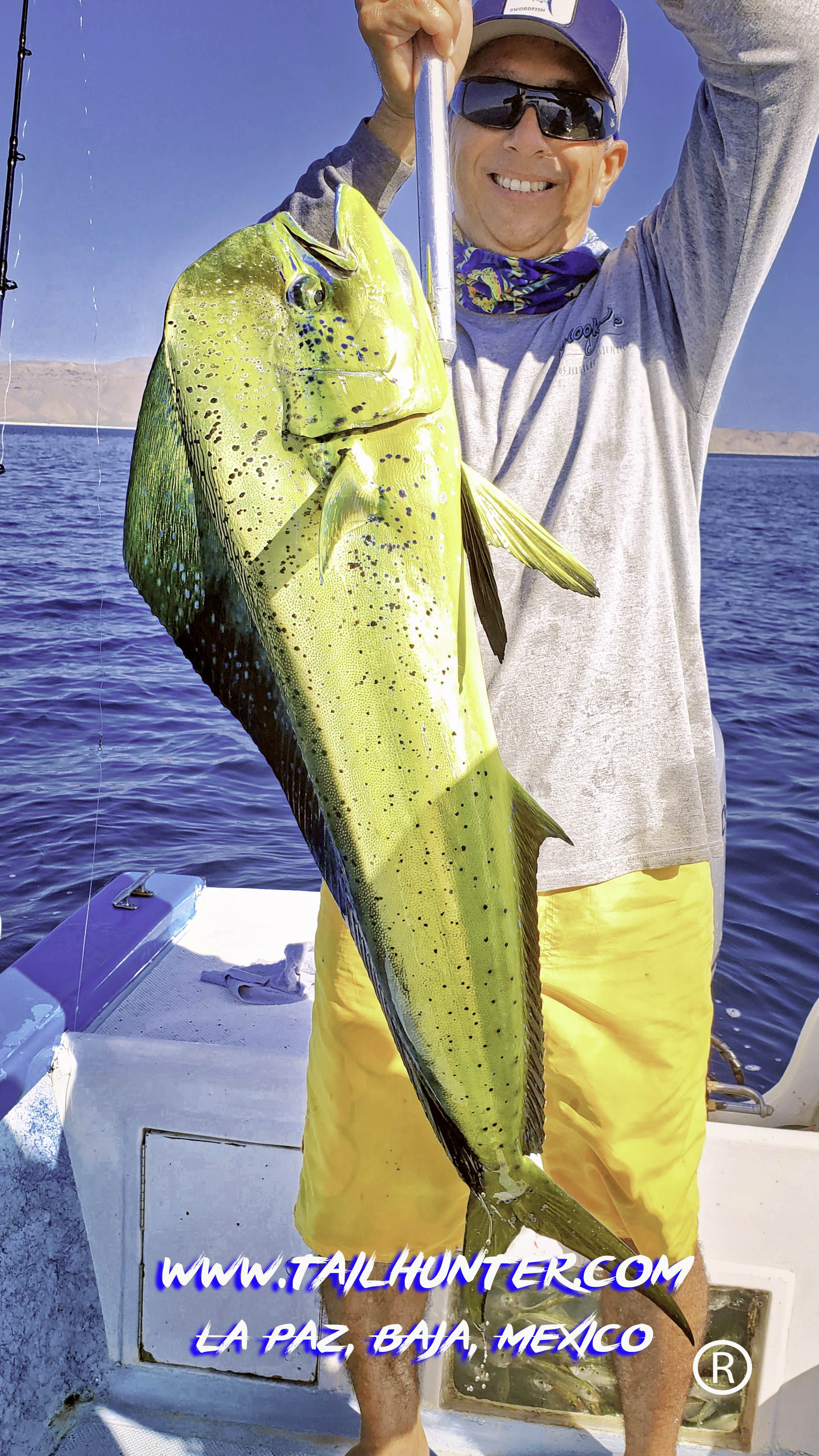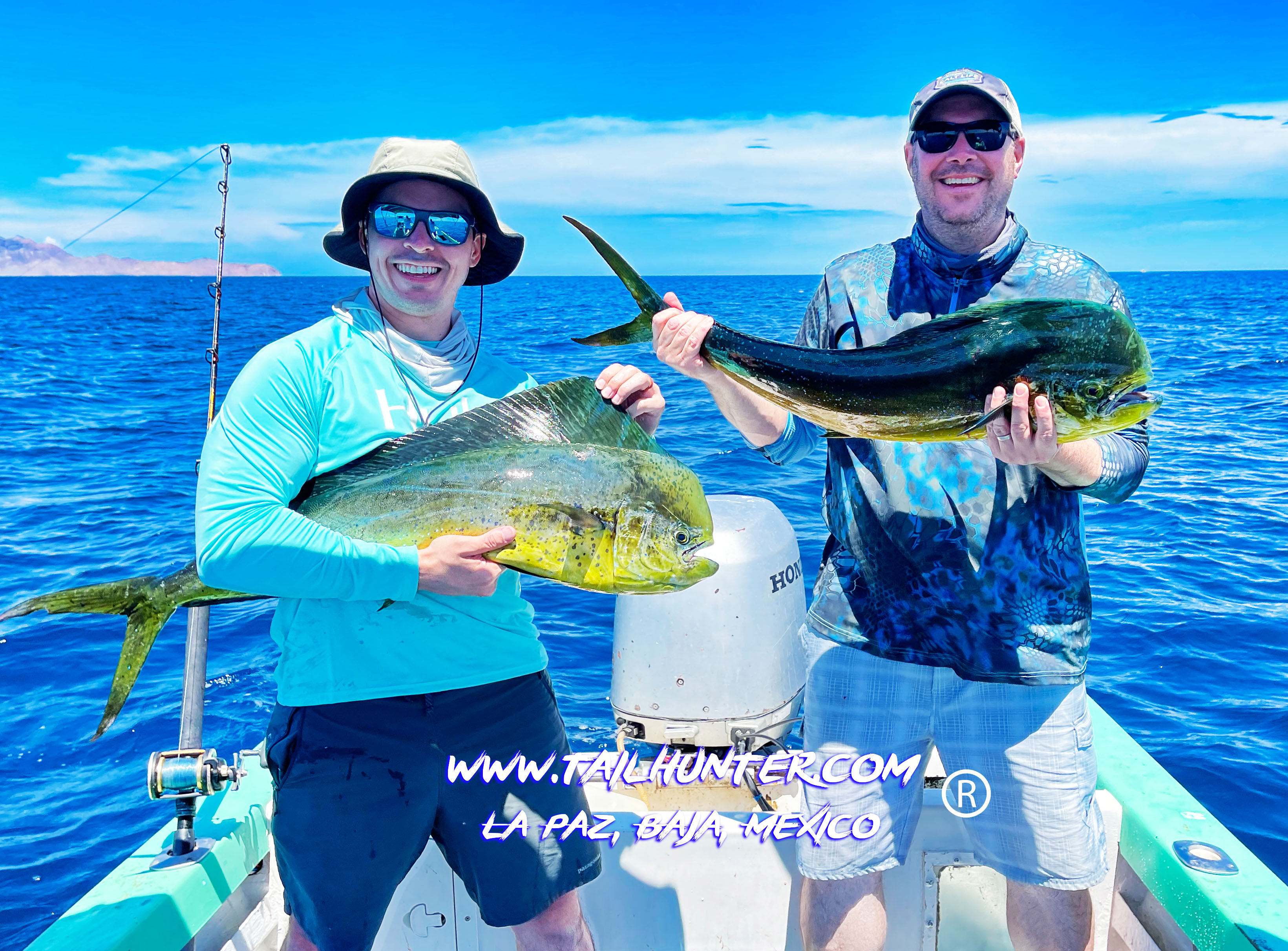 Dorado, especially for our Tailhunter La Paz fleet are 90% of the catch with most fish about 10 pounds, but if you find the right spot, fish up to 20 or even 30 pounds are not uncommon. Quite a few fish are getting lost, but that’s part of the fun.