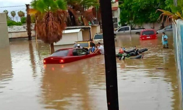 Literally without warning, huge black (not dark) clouds rolled in with giant cracks of thunder and lighting and it was like someone started dumping buckets of water on La Paz. There was no drizzle ahead of time. The skies just started opening up. I’m not kidding when I tell you that people were suddenly running like crazy for shelter. Joggers and bikers were suddenly dashing to find cover. Construction workers were jumping off scaffolds to escape the downpour. Cars were swerving trying to dodge the people and boats in the bay were full throttle to get back to the port or beach.