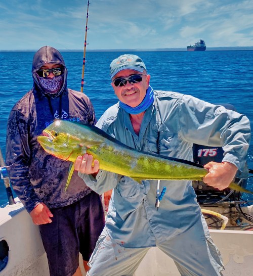 A great photo of a larger bull dorado! David Marin hooked this good-looking mahi just outside of Bahia Muertos.
