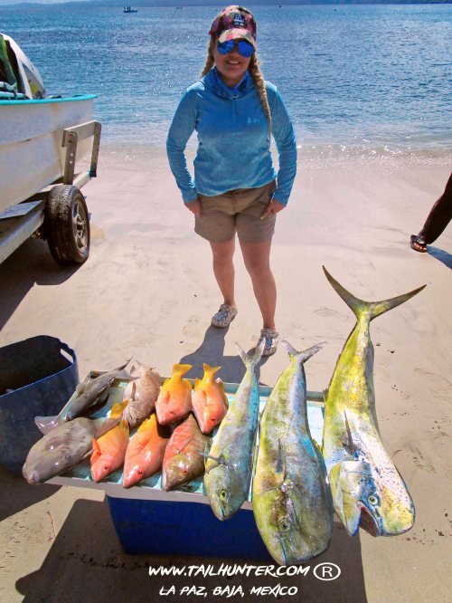 First-timer luck? Hysby Ramirez did pretty darned good with big dorado, snapper, pargo, cabrilla and big triggerfish!