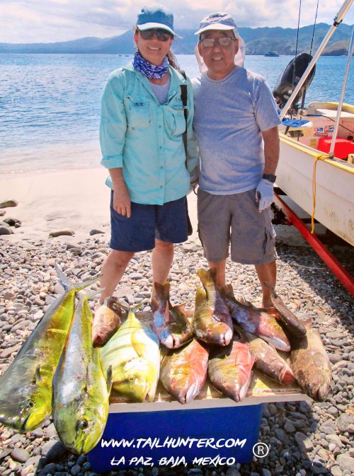 Quite a variety for Marlene and husband Taky of great eating fish including lots of pargo, cabrilla, snapper, palometa and dorado!