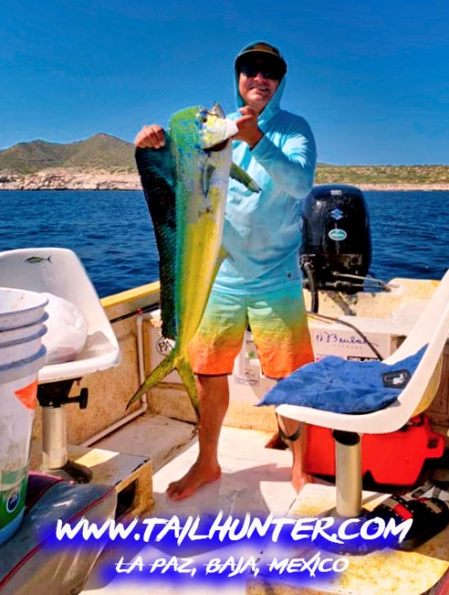 Birthday dorado! Bill Smith from Santa Cruz CA spent his birthday with us in La Paz visiting us for the first time and put this nice bull in the boat just north of La Paz.