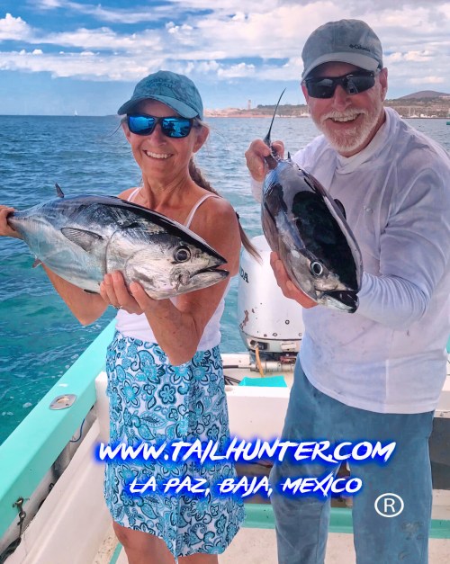 There are always feisty bonito to tear up the lines for some fun! Jennifer and J.S. show off a couple of these tough fighters .