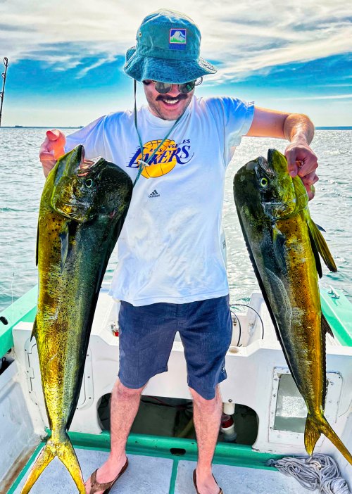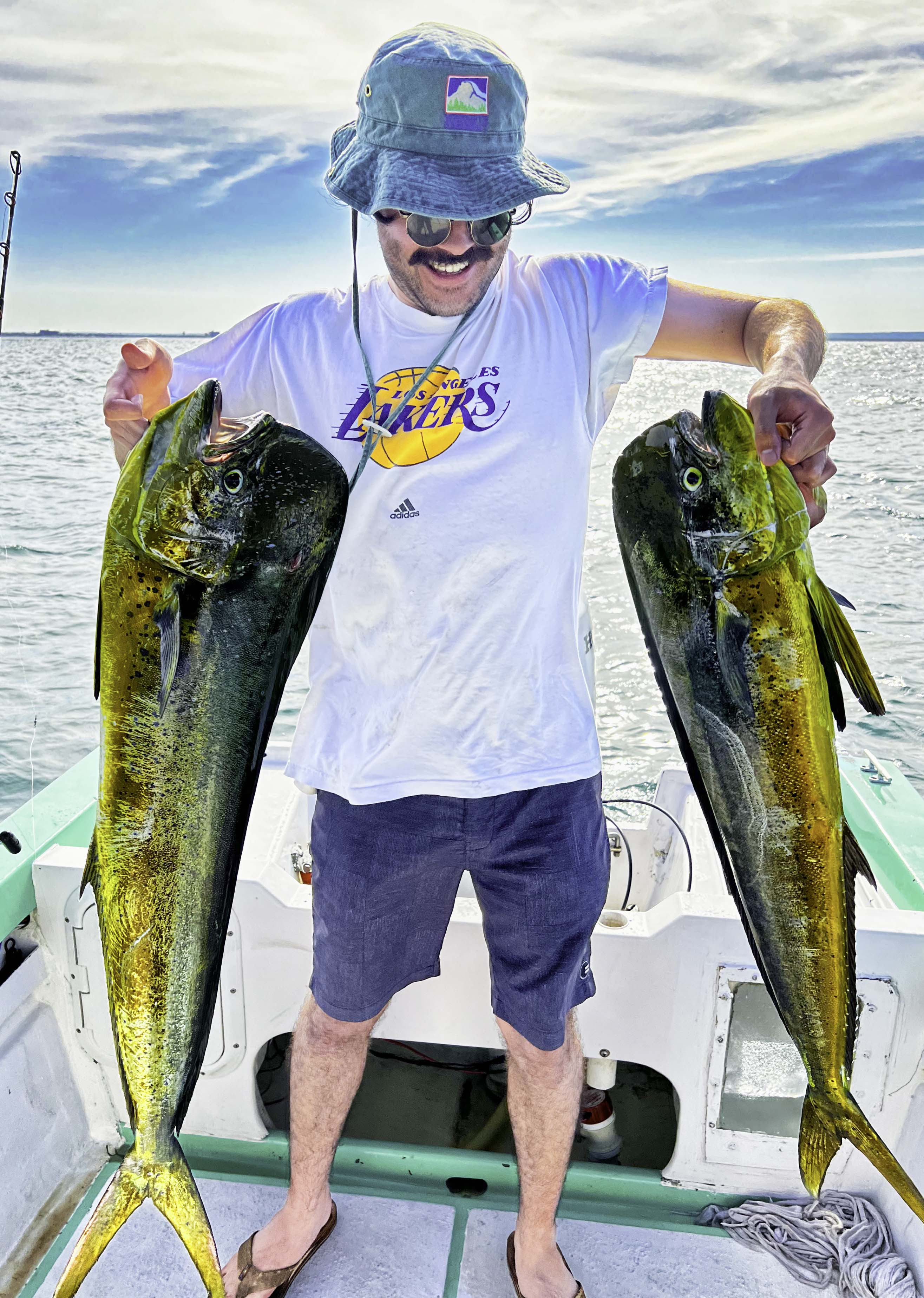 It’s been more than a decade since John Jordan fished with us (left) but had a terrific day with the dorado and pal Milo Crowley.