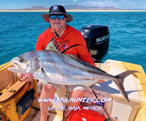 Chance Wallis took this jack crevalle trolling off the south end of Cerralvo Island. You can still see the jig hanging from the fish’s mouth. He was staying with family at Gary Wagner’s Rancho Costa in Bahia Muertos.