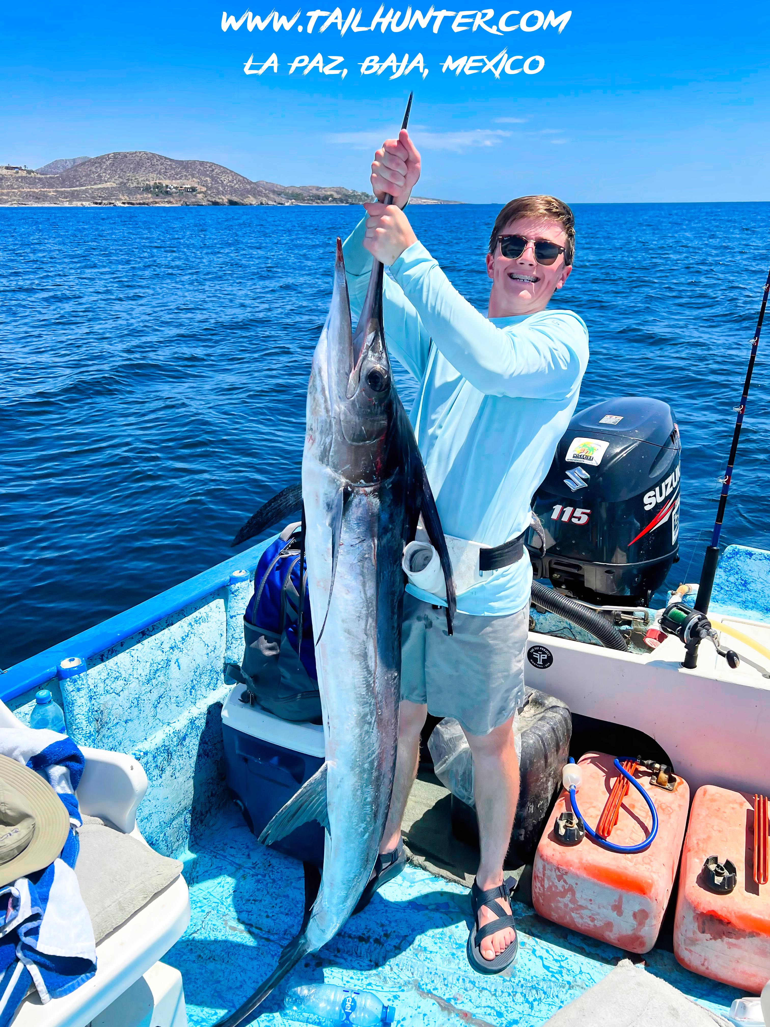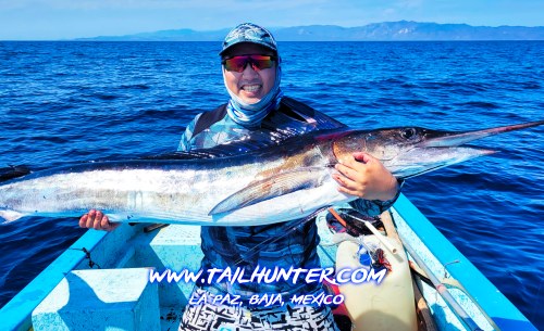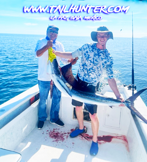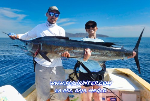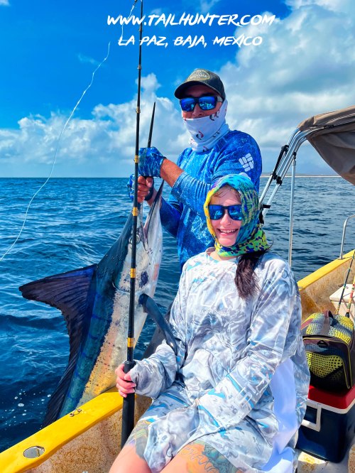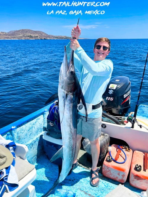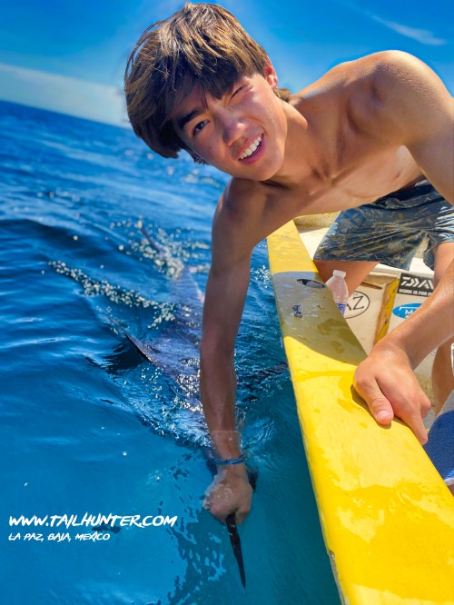 From Colorado, Tanner Allen is another of our first-time visitors and his first-day out he catches this striped marlin just off Punta Perico. The fish was released.