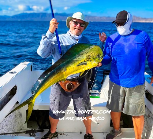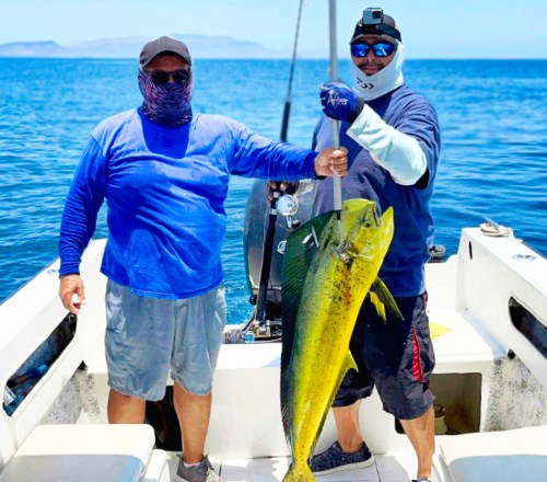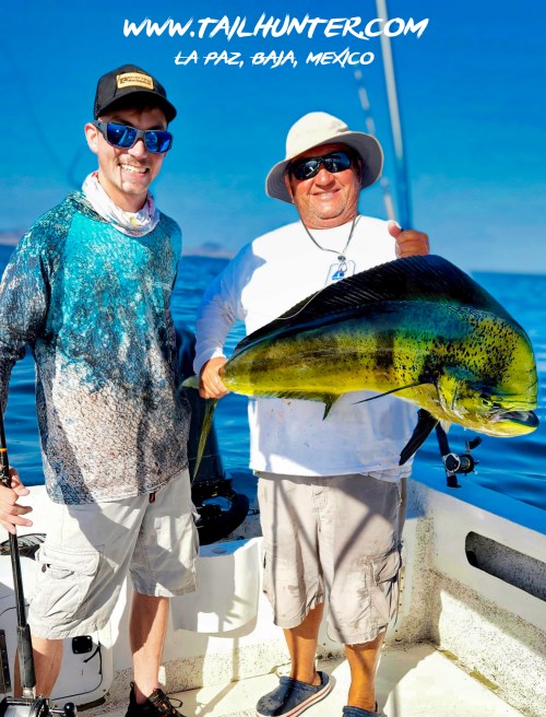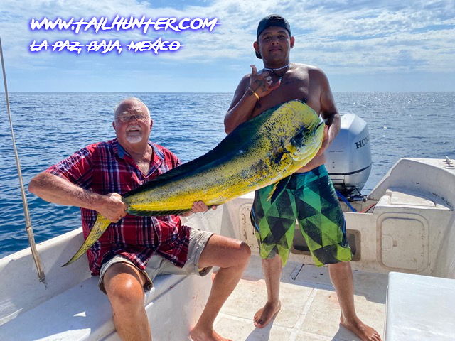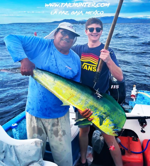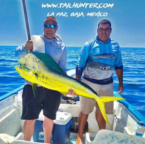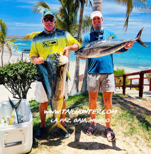 Our amigo ,Gary Wagner with his son, Miles, visiting from Colorado with a solid dorado and one of the few yellowfin tuna anyone has hooked all year while staying at Gary’s Rancho Costa there in Bahia Muertos.