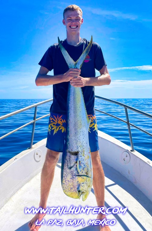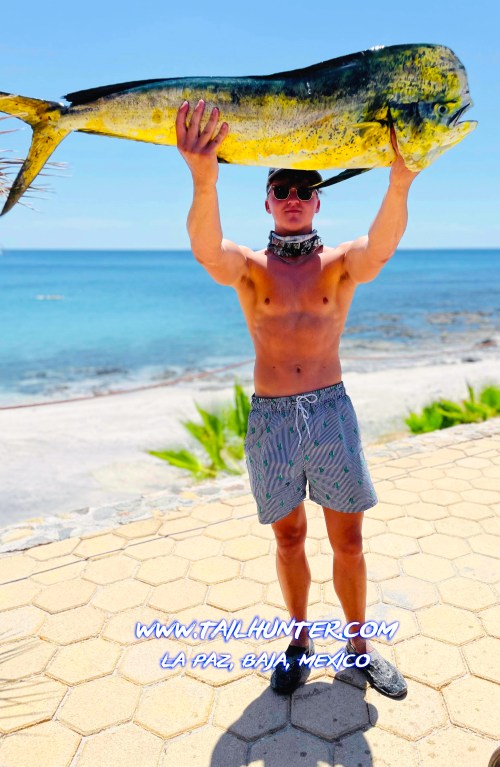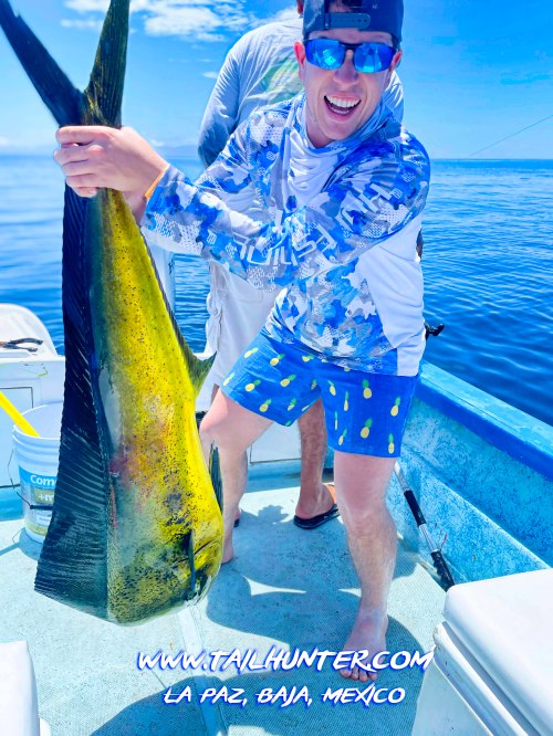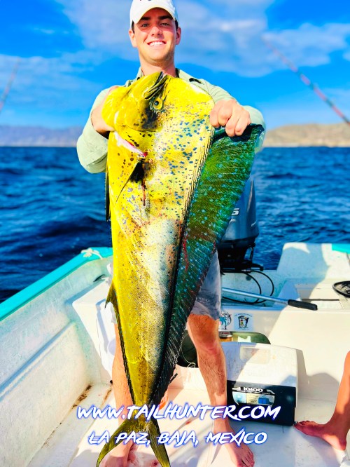 You can tell this is a monster fish because Miles Wagner is about 6’6″ tall. Wow. Pretty bull dorado. Great catch, Miles. He was out visiting from Colorado at Rancho Costa in Bahia Muertos.