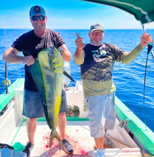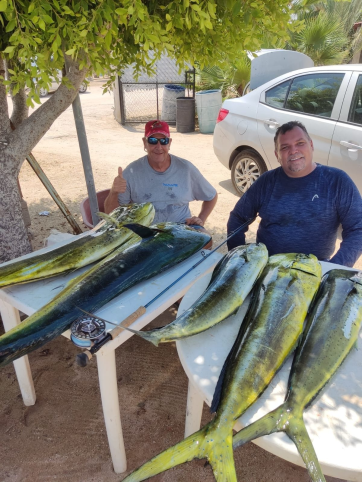 Two of the best! On their 2nd visit this year, Steve Ritz and Larry Chastain. The got into a swarm of dorado by the looks of it with their favorite Captain Gerardo.