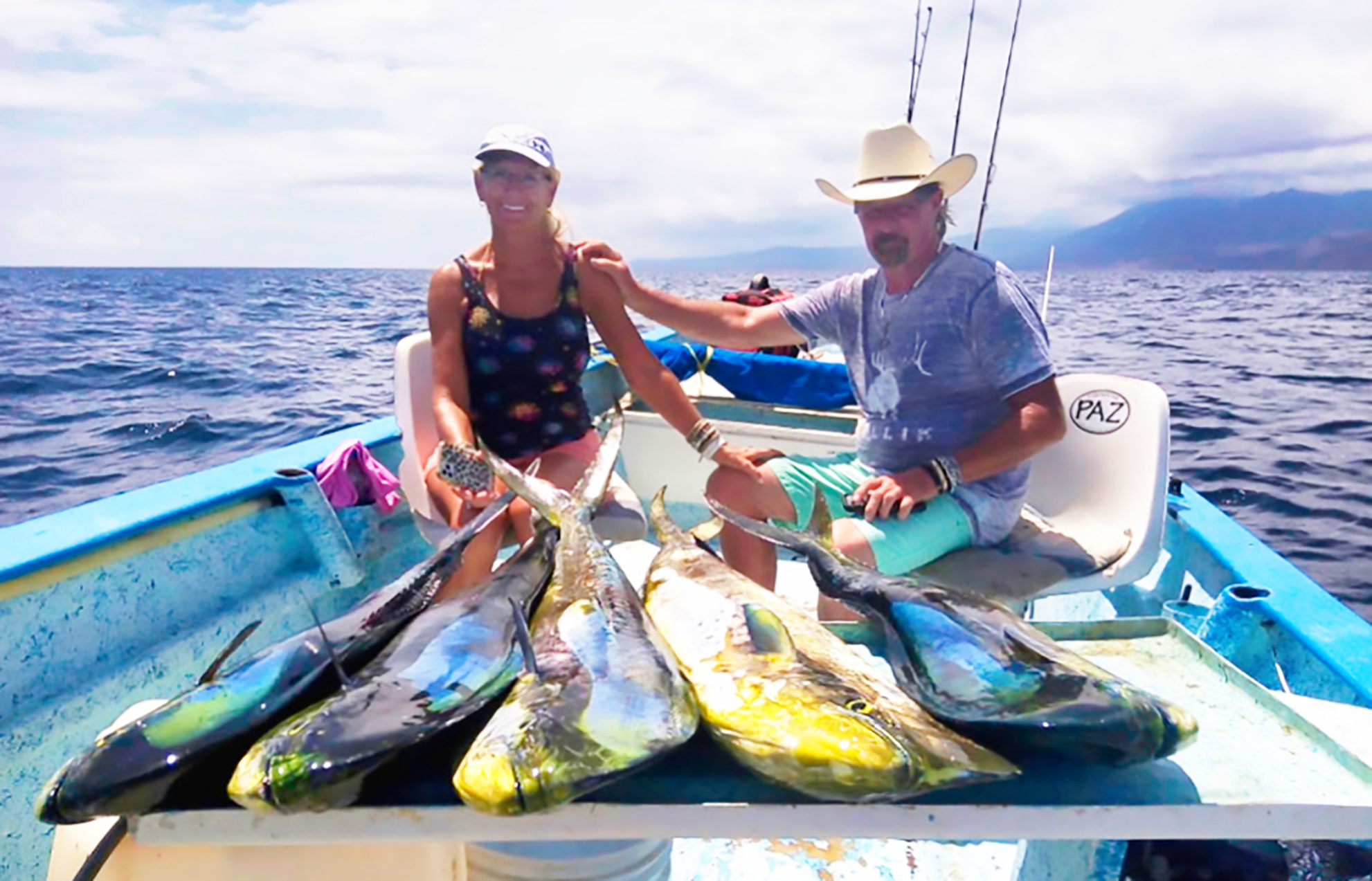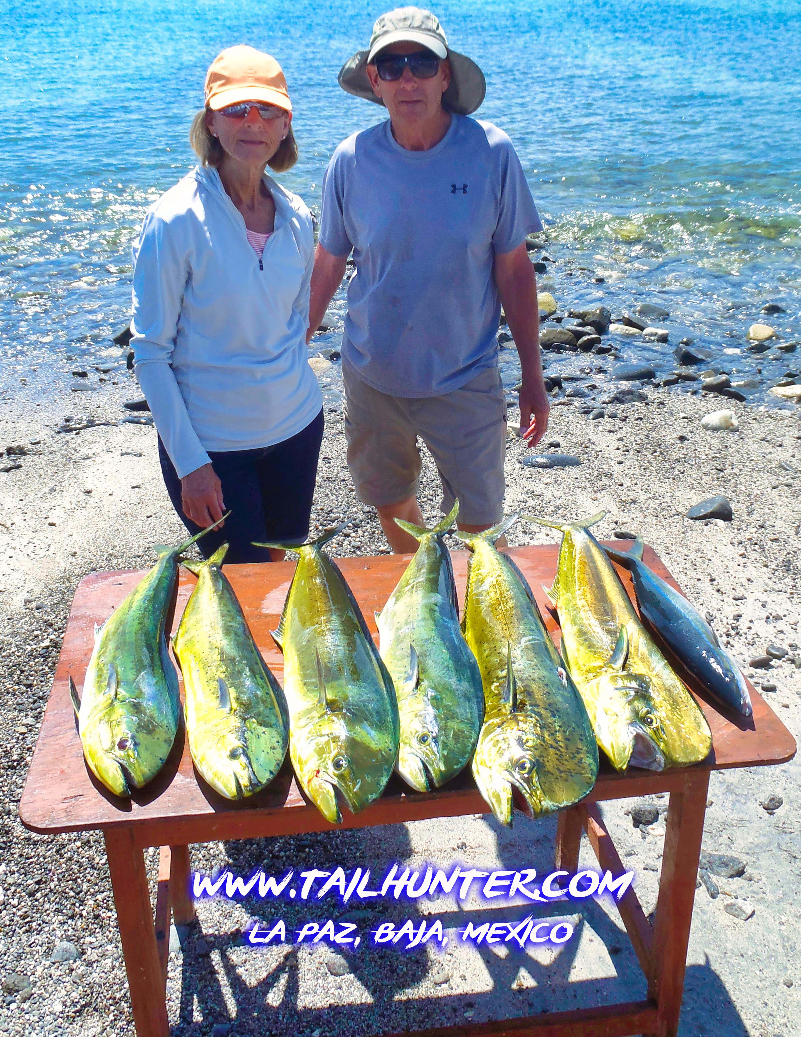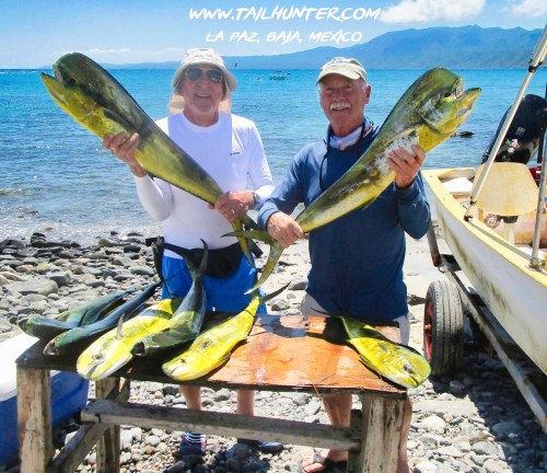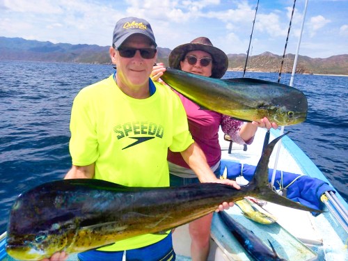 Fishing with their favorite Captain Pancho, Marlene and Taky Kikuchi hooked up on a good batch of dorado plus a tasty barred pargo.
