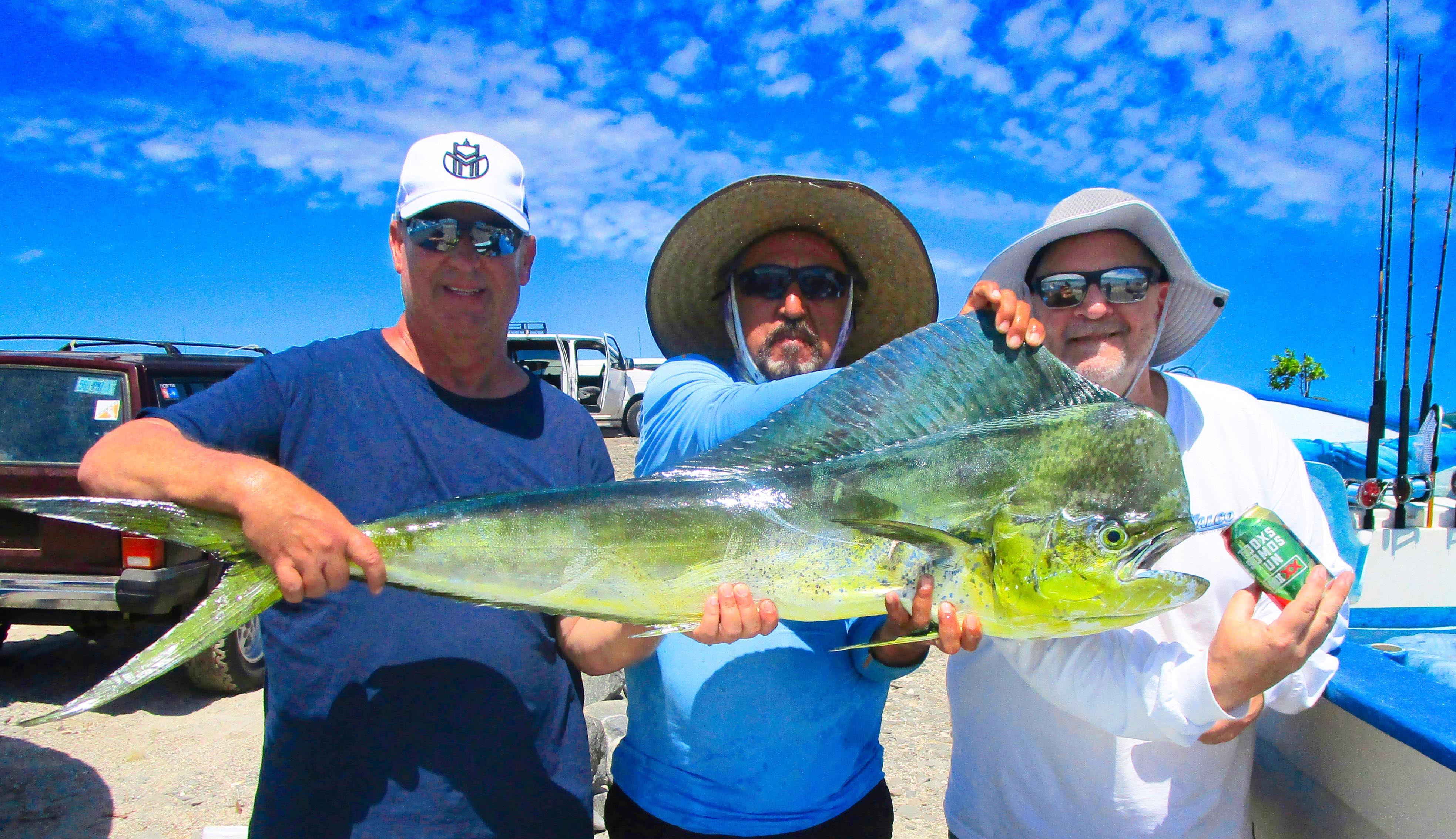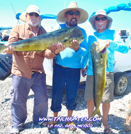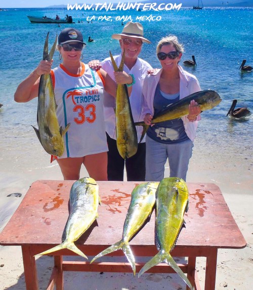 The Haltons…Belle, Brian and Liz squeezed in one day of fishing and did well with dorado to take and have cooked up in town.