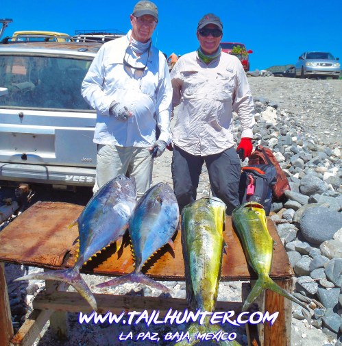 First day for Sal Pamiza from S. Carolina with our son-in-law from Hewitt TX, Brian Reid and a good start on the fishing week including a rare blue tiger dorado on the end of the table.