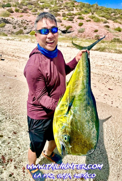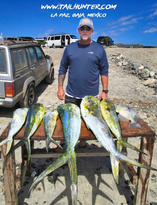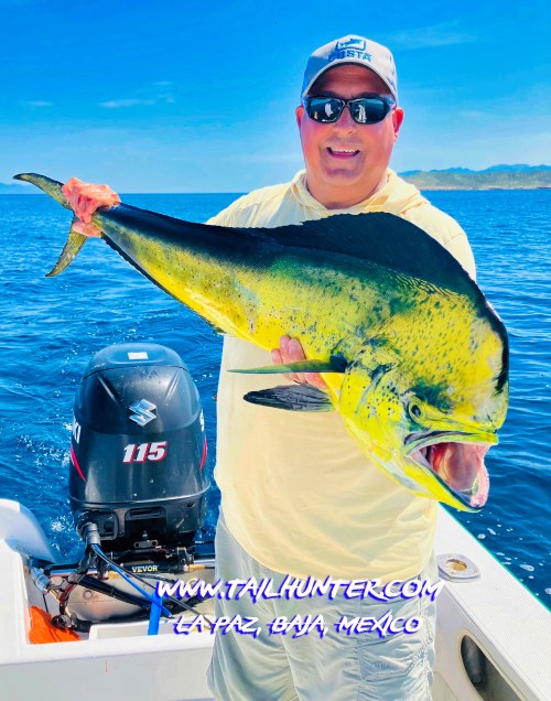 Jim Bailey from San Diego on a first-time visit didn’t do so bad with the dorado at Bahia Muertos! Good day!