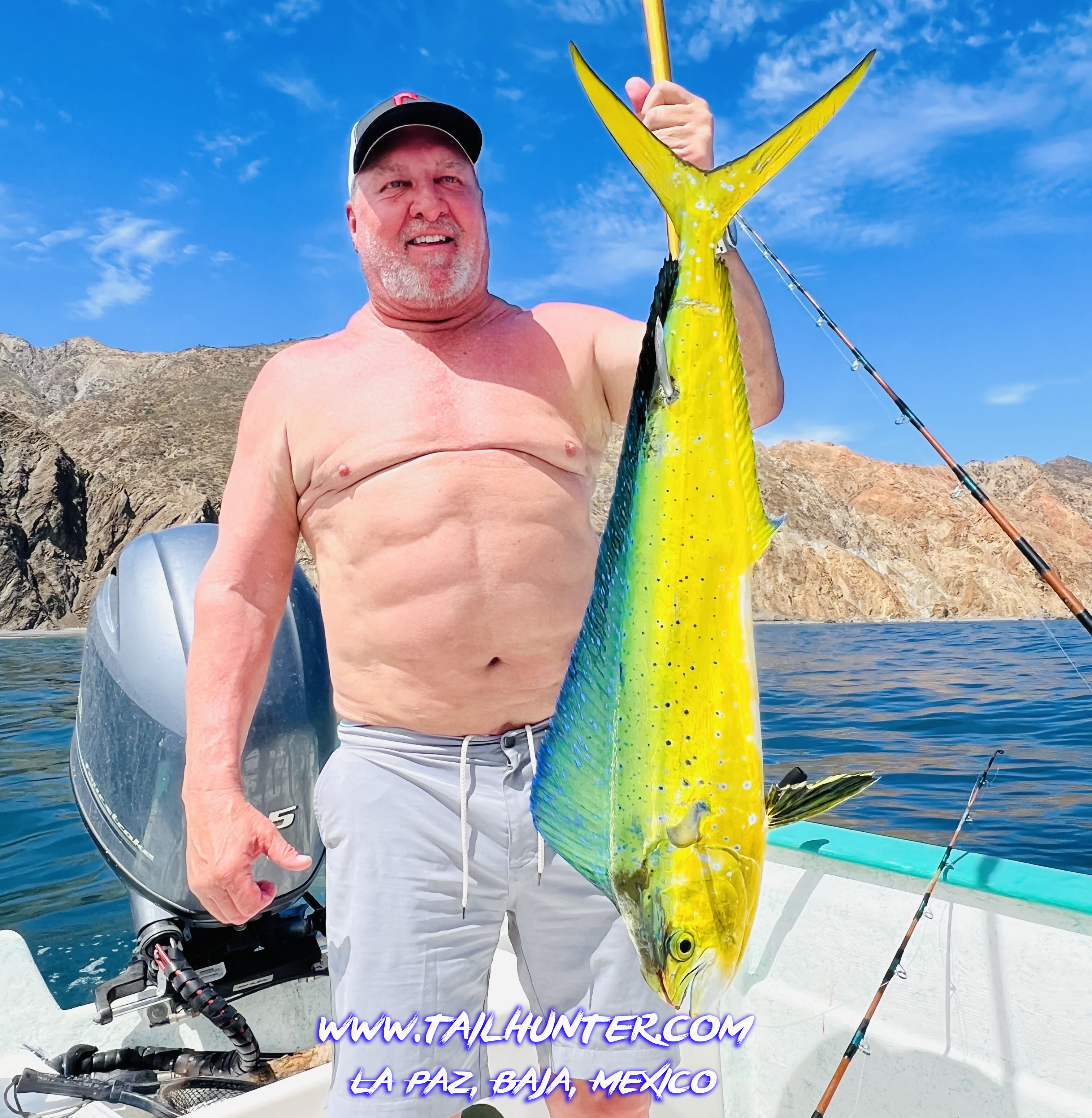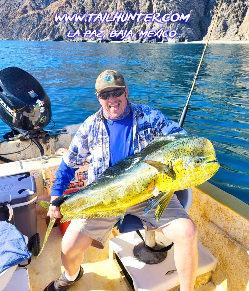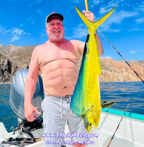 Our amigo, Doctor Art Flippin, had just one day to fish and was drifting the shallows over the rocks fishing for cabrilla and pargo and got surprised by this nice bull dorado. Art looks kinda happy! He did also get pargo, jacks, cabrilla and rainbow runner as well. Art lives in Colorado.