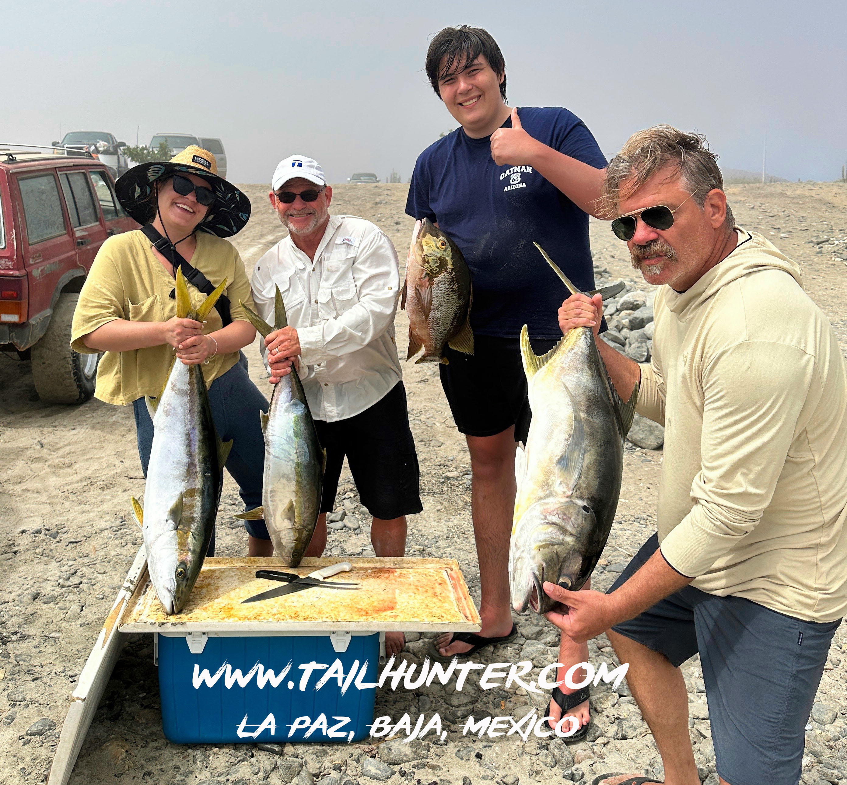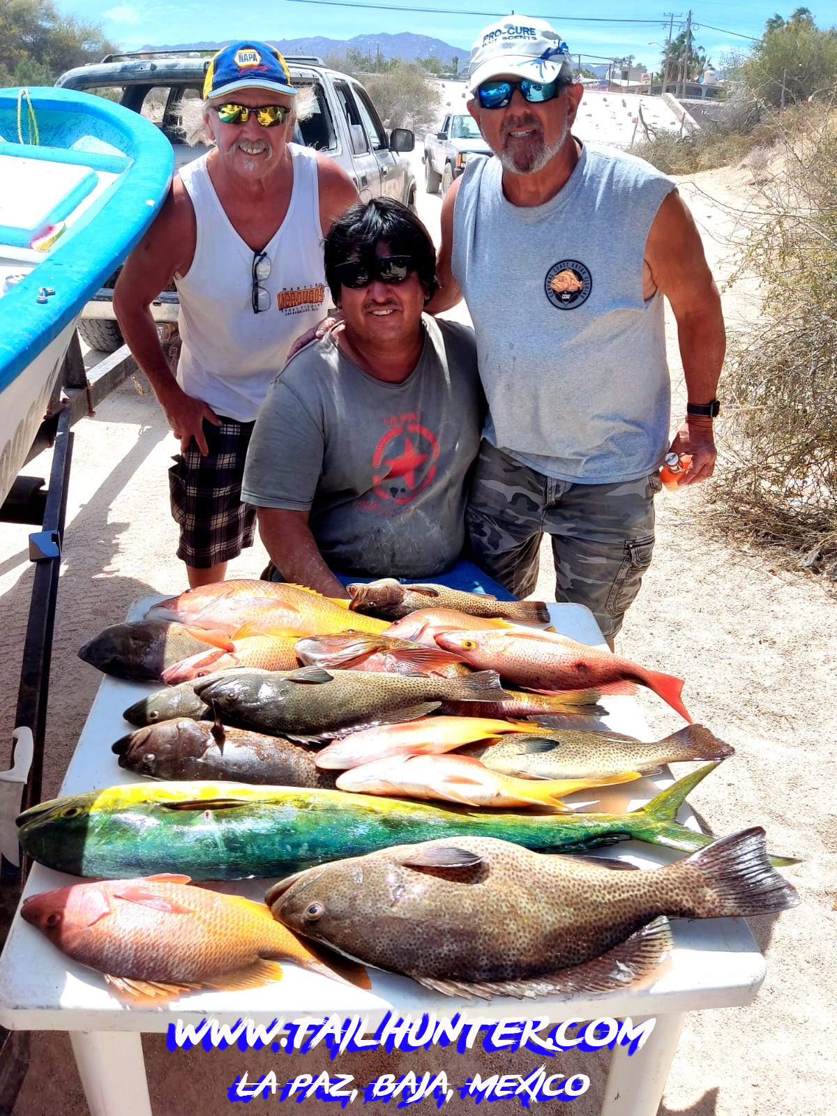 I think I’m coming over for fish tacos. Our amigo, Jimmy Williams was with Phil Desautels and Phil Perrone and I see dorado, ca brilla, pargo and yellow snapper on the table. They got hit by the winds, but these guys have experience and were able to hide in a cove and found a honey hole of fish!