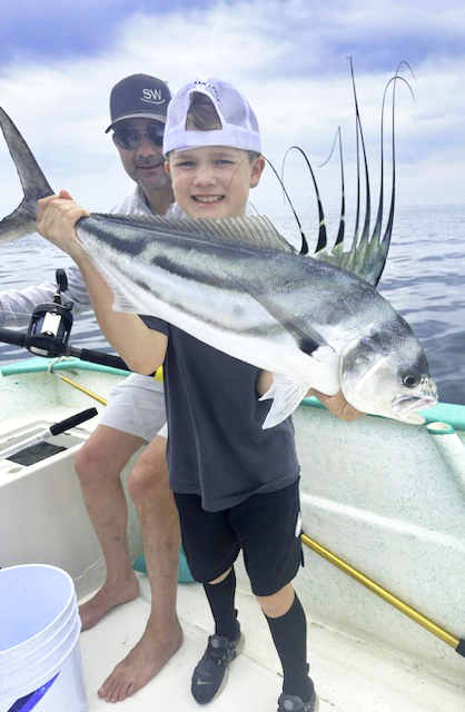 We’ve know Cole Chavira since he was about 3 feet tall. He’s from the San Diego area and an excellent angler who has been in La Paz a zillion times. He picked up this roosterfish on the east side of Espirito Santo Island. Nice to see the roosters start to move in. The fish was released.