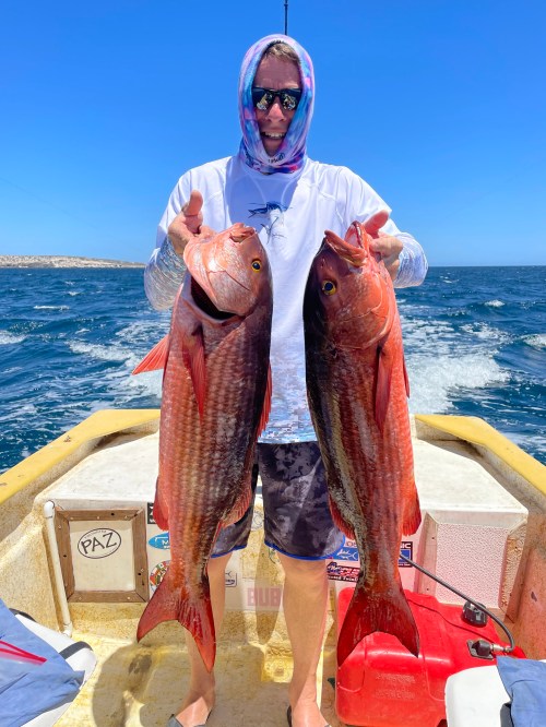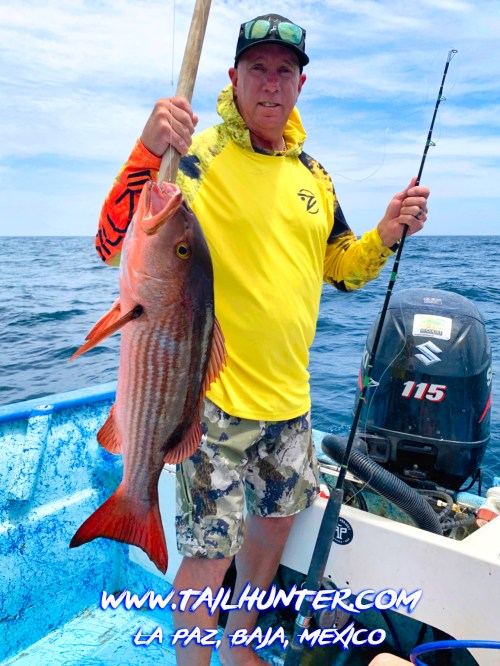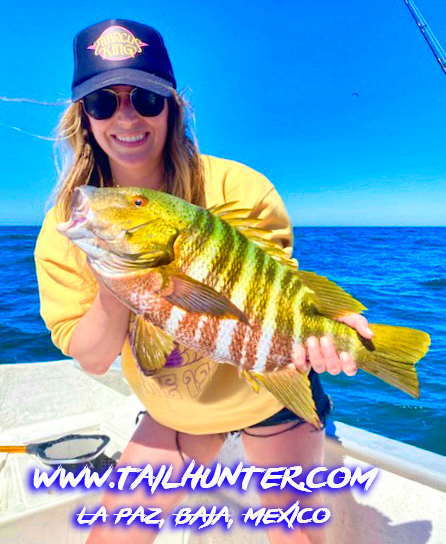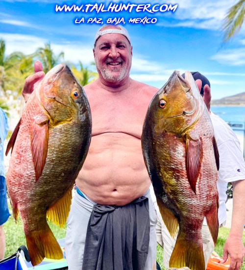 The pargo or schooling and spawning in the shallow and exciting to see but real horses to try to pull out’ve the rocks. However, Mike Luna from Utah got this big guy out while fishing with Captain Victor! They are often willing to bite ,but most are lost because of sharp teeth and scales and they head back to the rocks! Nice catch!