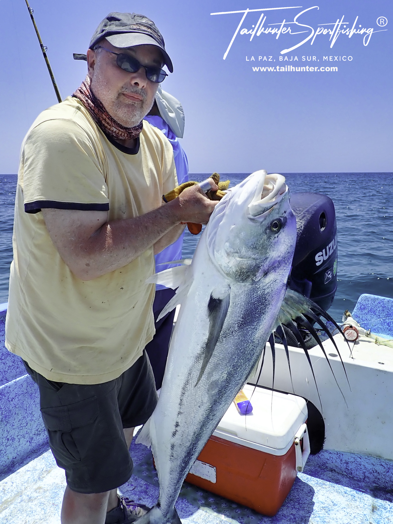 Fish Hooked This Week: Roosterfish (up to 90+ pounds), jack crevalle, yellowtail (20-25 pounds), marlin, sailfish, amberjack, bonito, dorado, pargo, trevally, pompano, sierra, cabrilla, needlefish, triggerfish, rainbow runners.