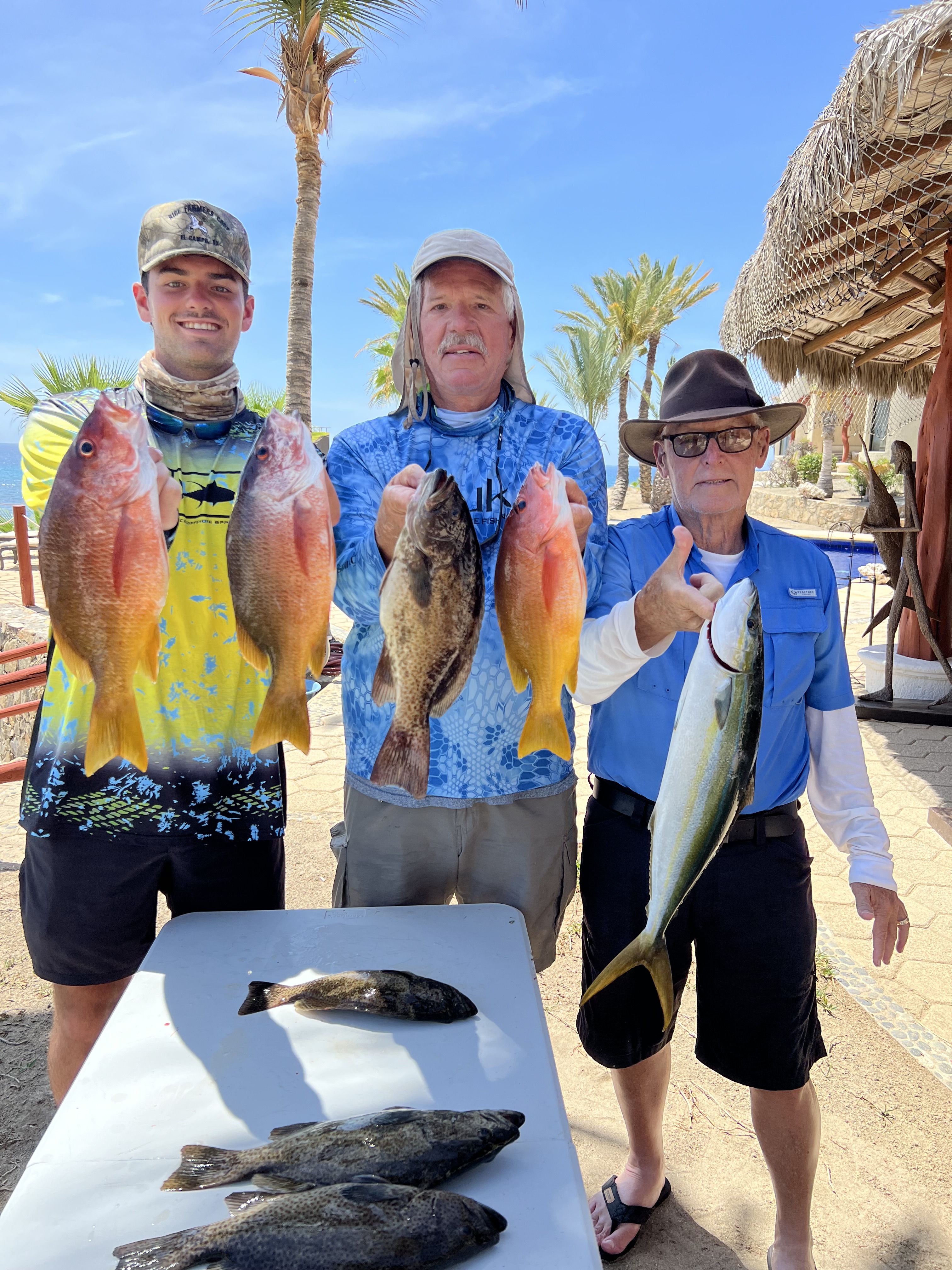 Gary Wagner at his place the Rancho Costa at Bahia Muertos with son Miles and an amigo with dinner…snapper, cabrilla and yellowtail!