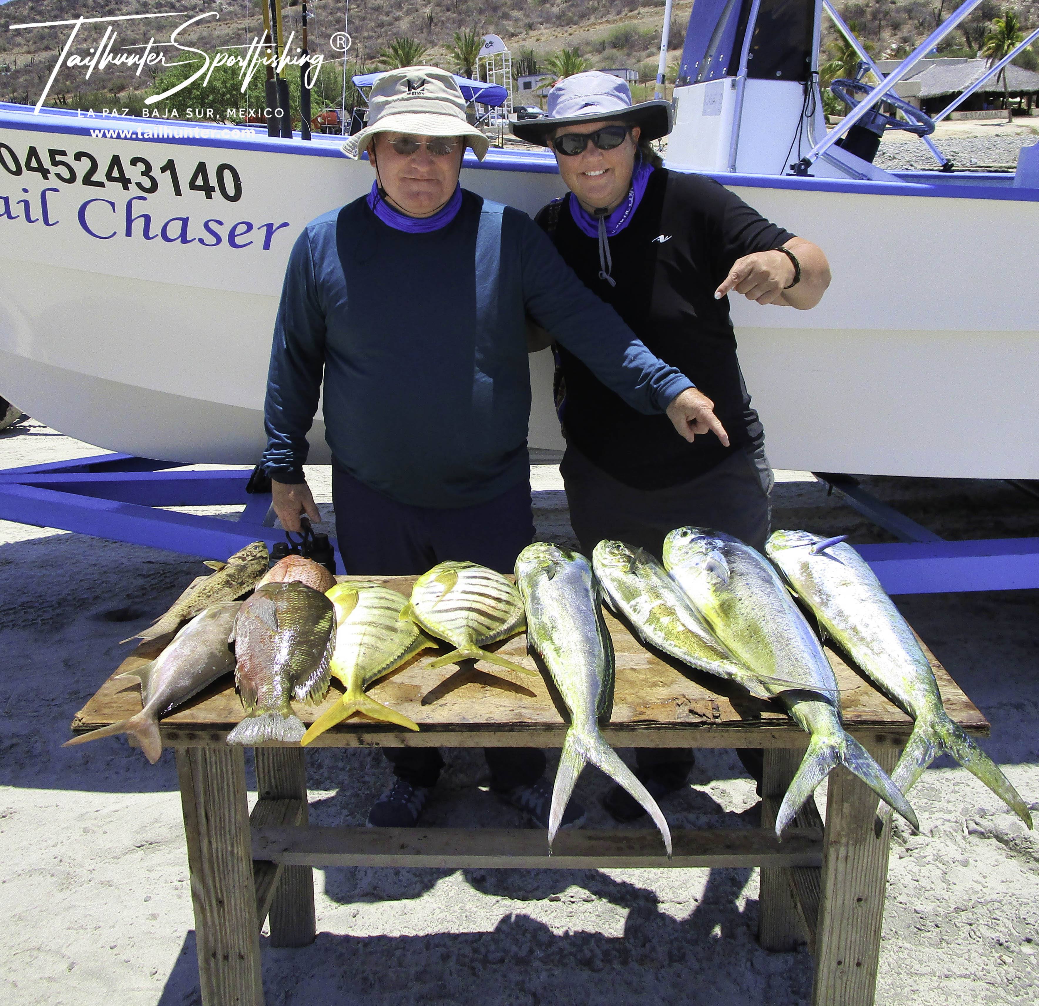Jimmy and Amanda have quite a table of fish…dorado, palometa (trevally), barred pargo, yellow snapper, amberjack and cabrilla!