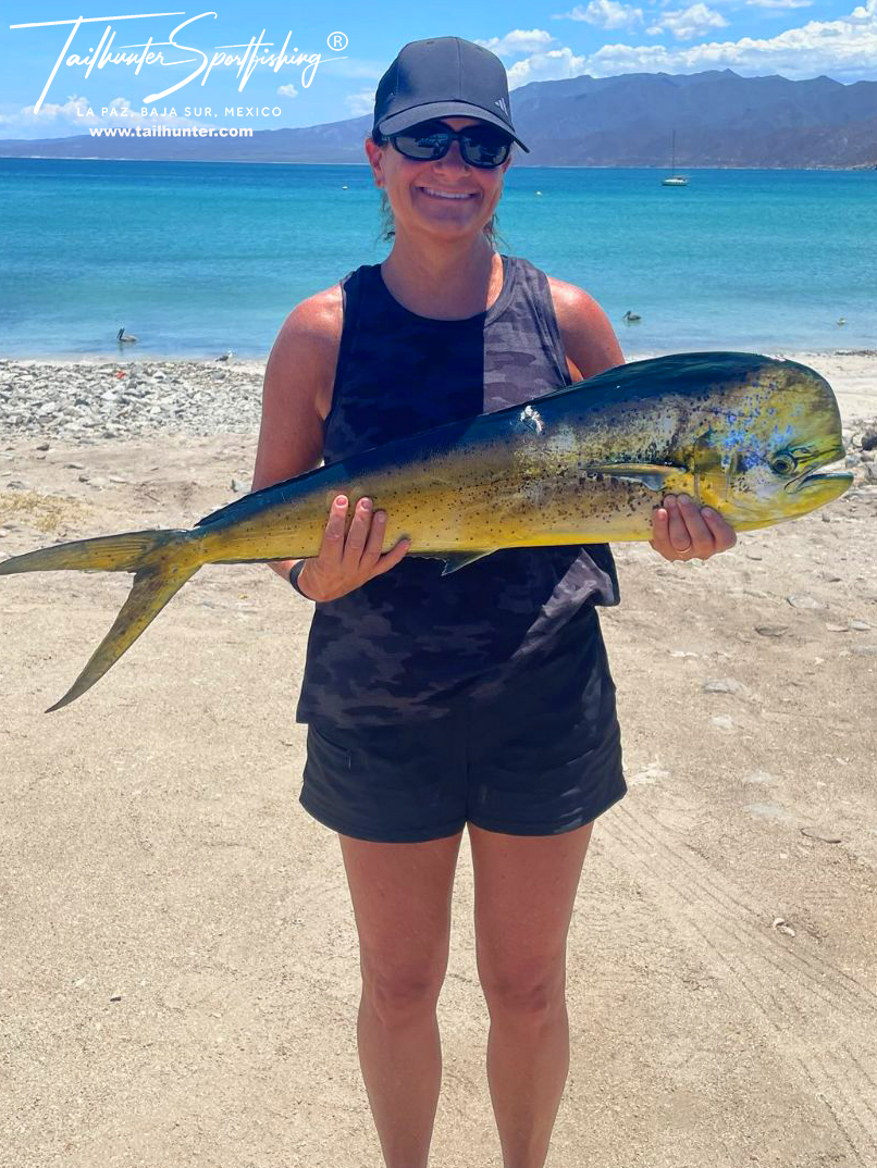 Jeanne always looks like she’s ready to bite the fish back! She’s got a nice bull dorado for the camera pose!