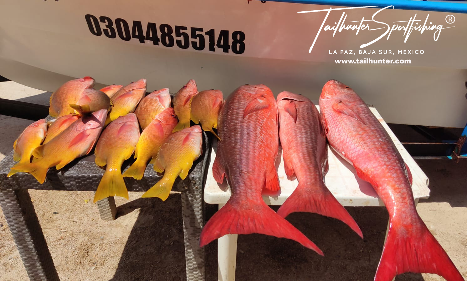 Big pargo liso are here as well which have migrated into the areas around Cerralvo Island and south along the shore from Punta Arenas. We’re seeing some 20-30 pounders, but these are tough fish. Don’t underestimate them! If 10 of them bite, we’re lucky to get 1 or 2 to the boats! Vicious tenacious fish and among the most frustrating because you can see the schools on the surface and you throw a bait on them and it explodes and you literally get yanked outta your socks!