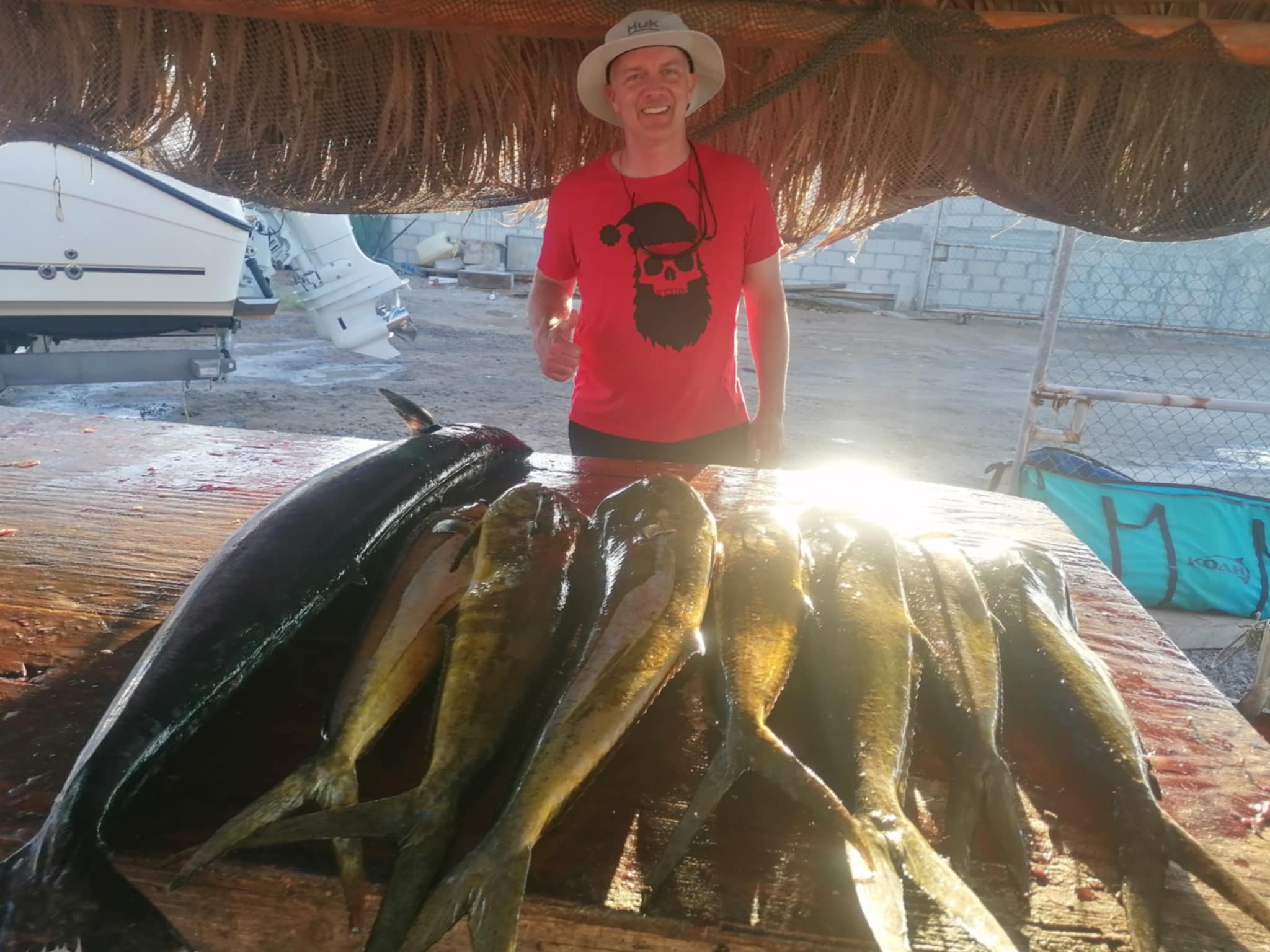Fishing a day outside the bay, Eric with his amigos nailed a box full of dorado as well as a nice wahoo.