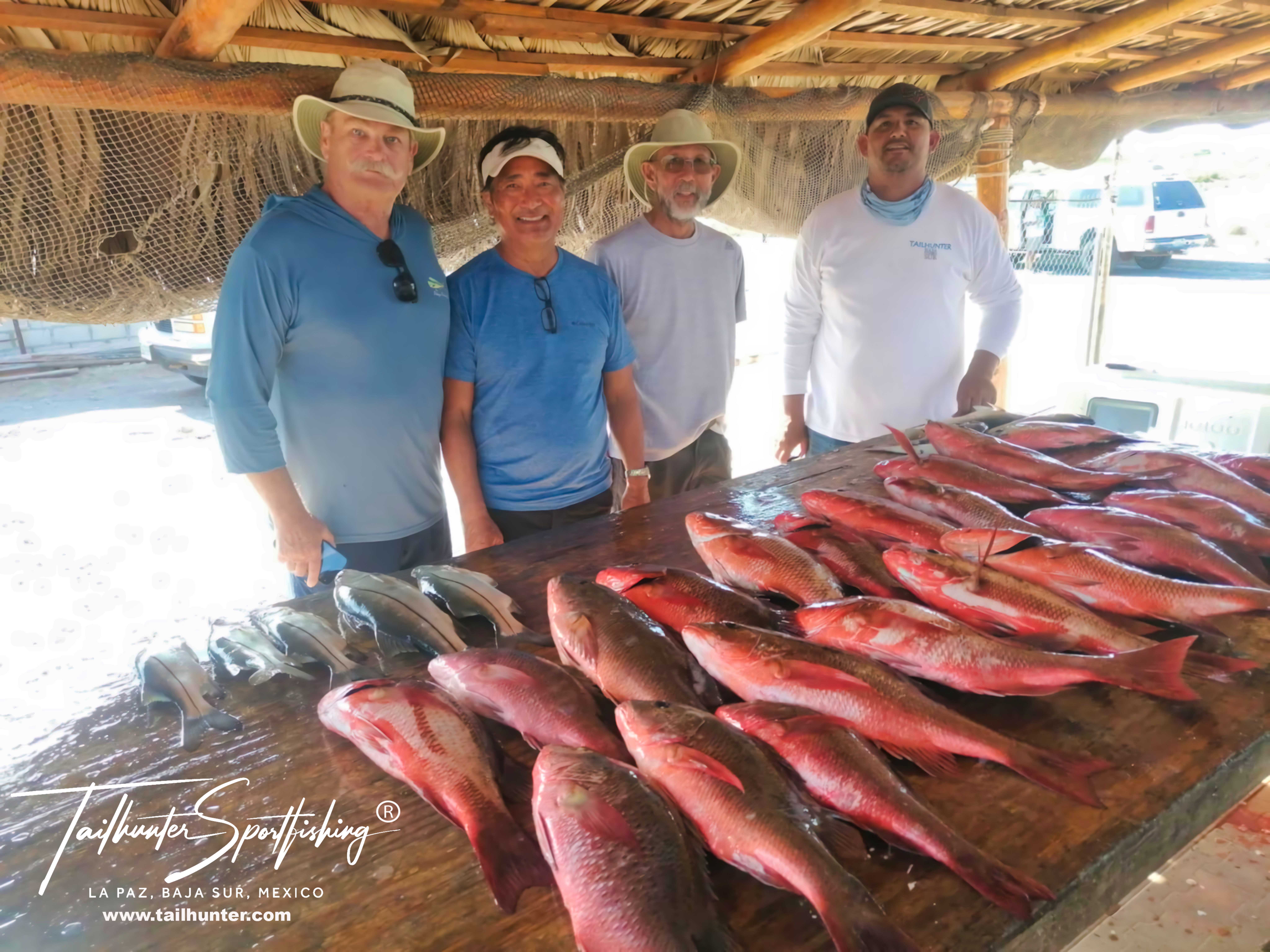 That’s a table full of dog-tooth snapper after a day of fishing in the mangroves of Bahia Magdalena for Steve Messer, Eric Messer and Steve Fox.