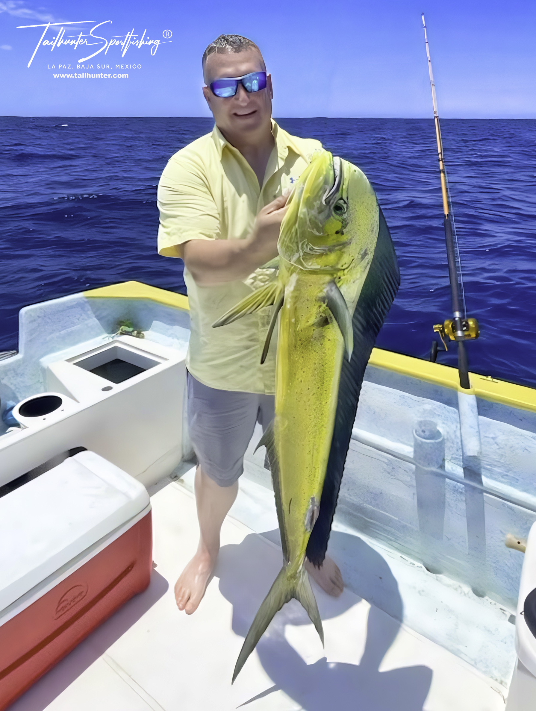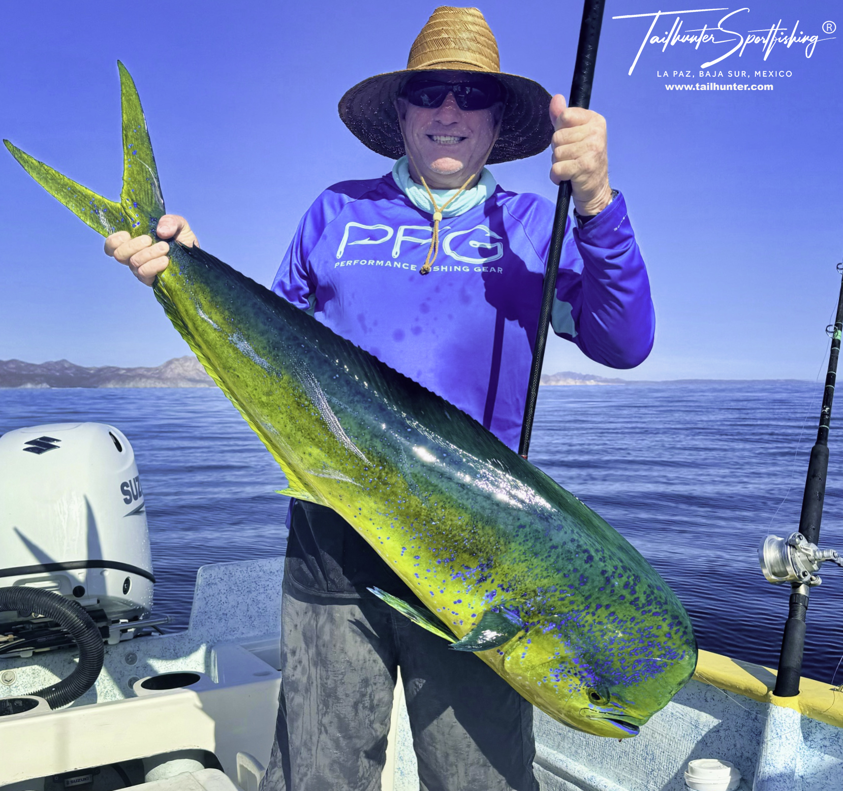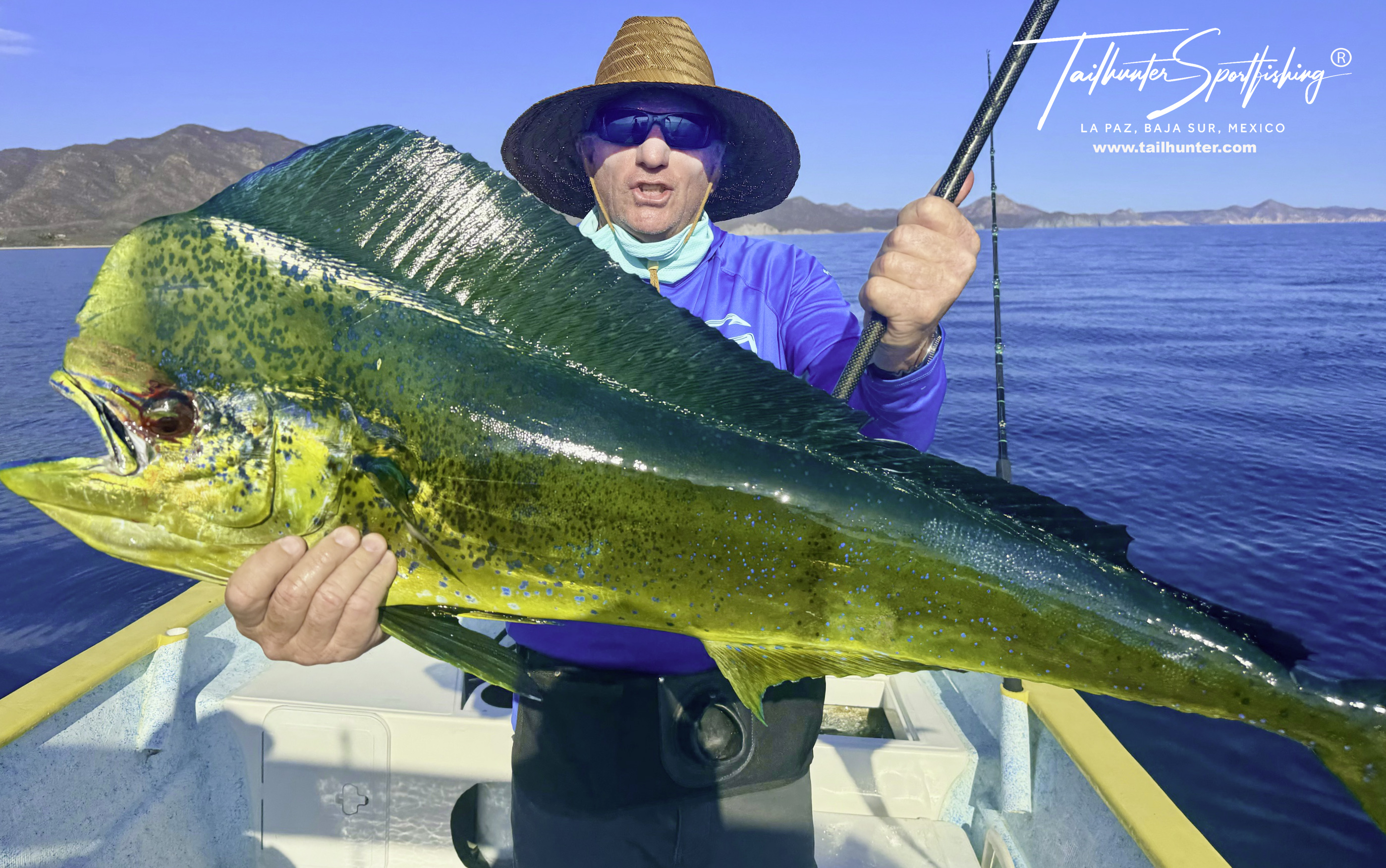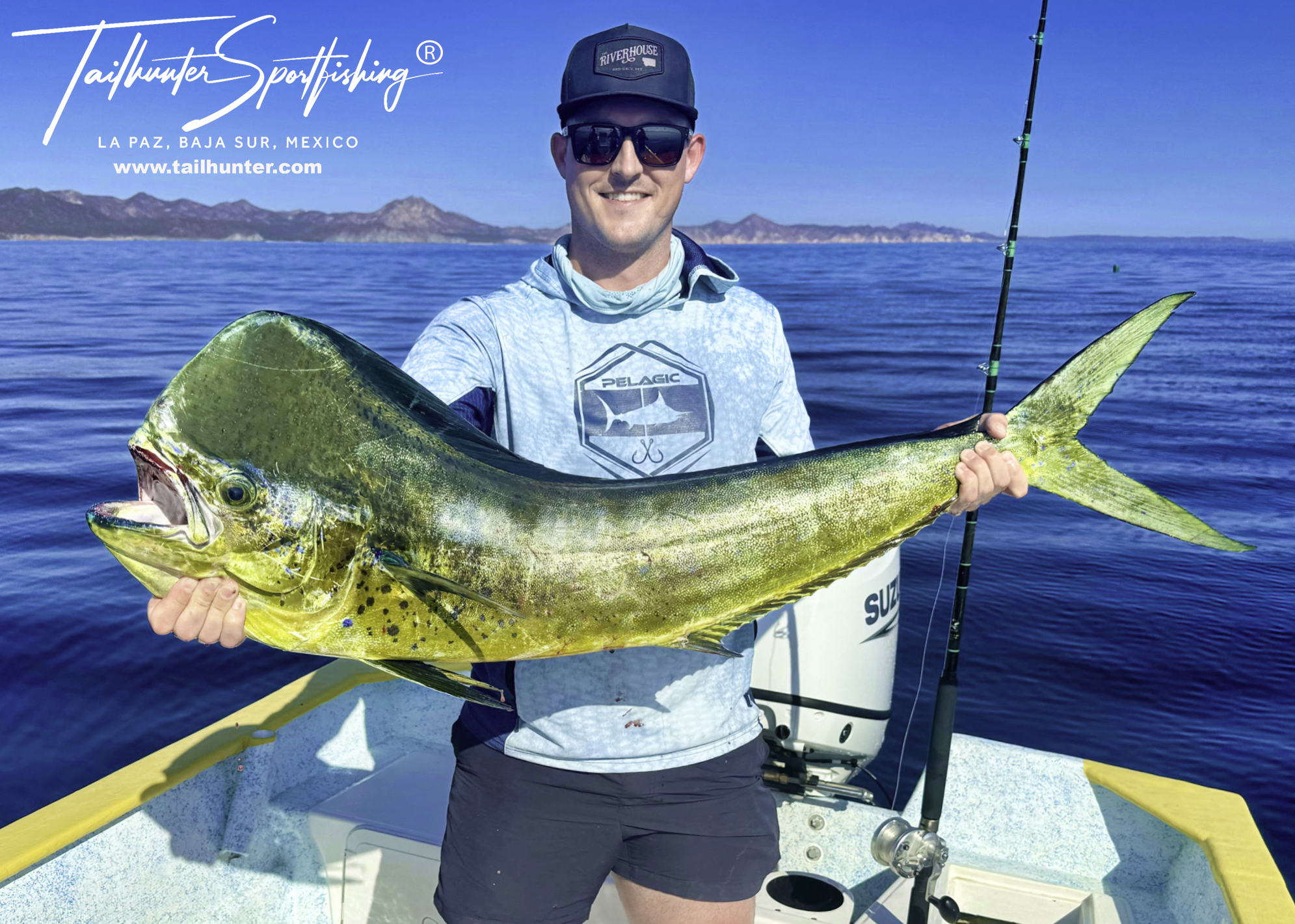 This is a NICE dorado. Connor is about 6’1″! He was out with Captain Luis north of La Paz Bay.