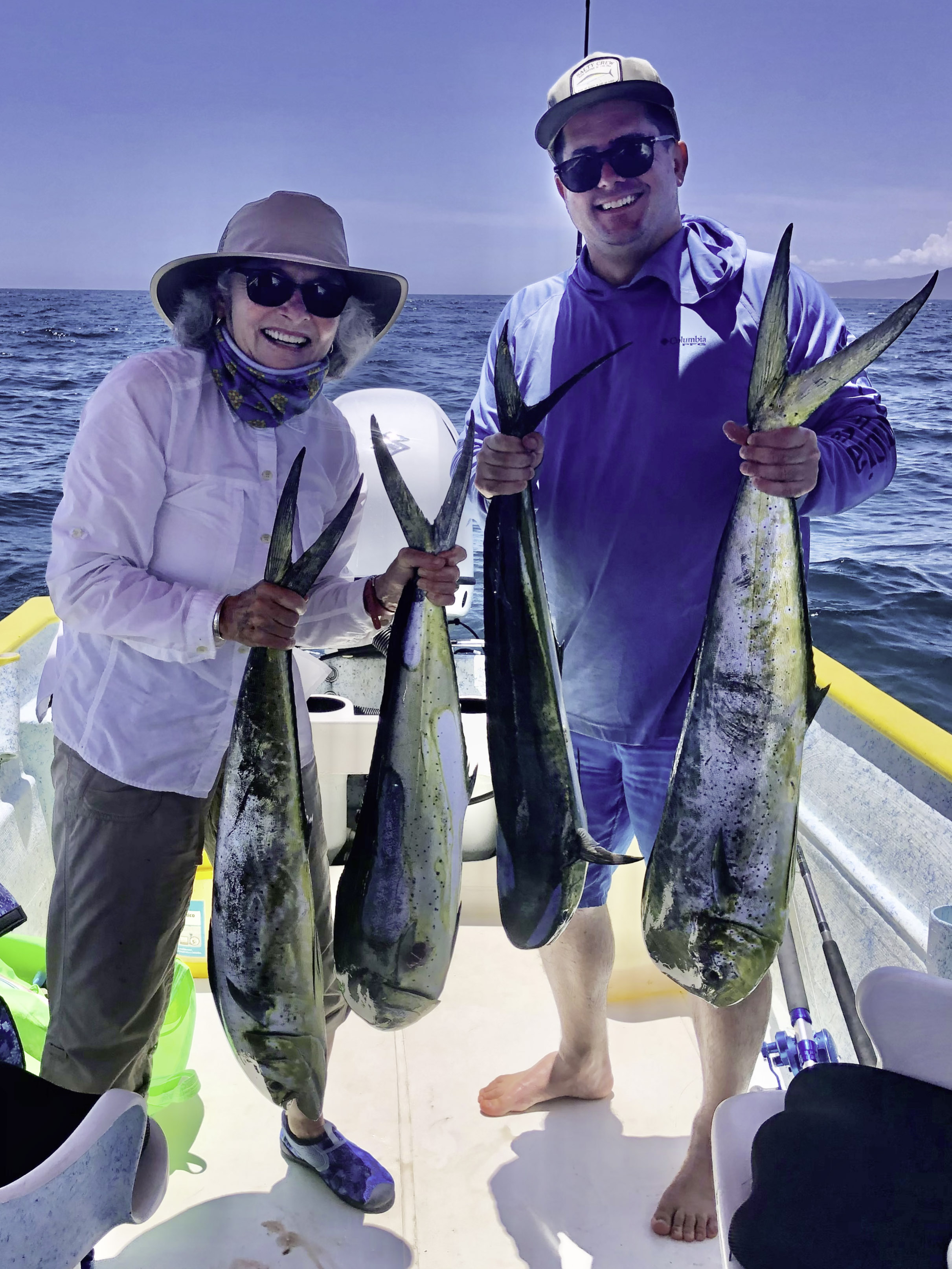 Eddie and Debbie Falcon with first-day’s catch of dorado going home to Nevada with them.