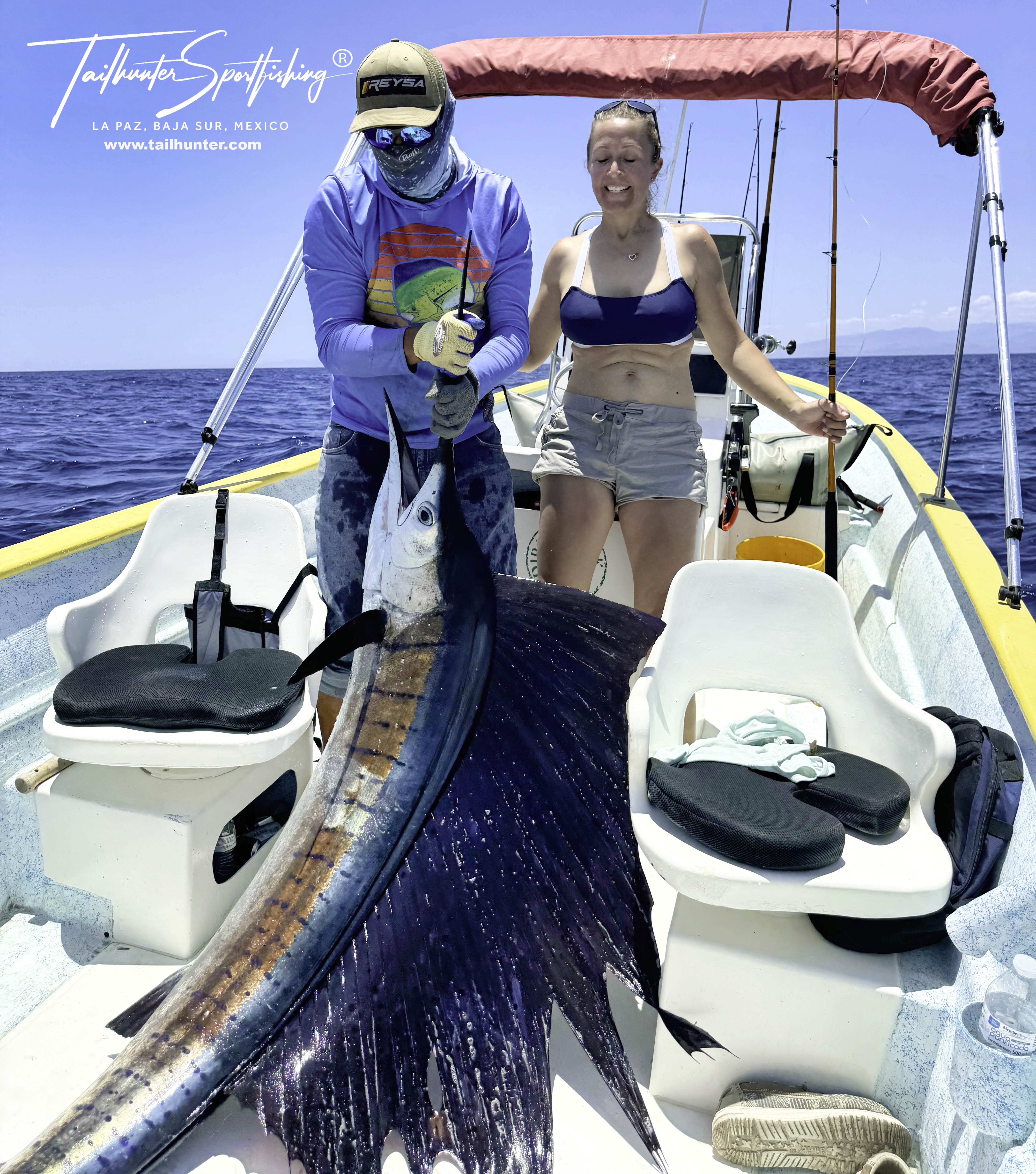 First time in La Paz, Emma Hart, with her first roosterfish too! She’s visiting us from San Diego.