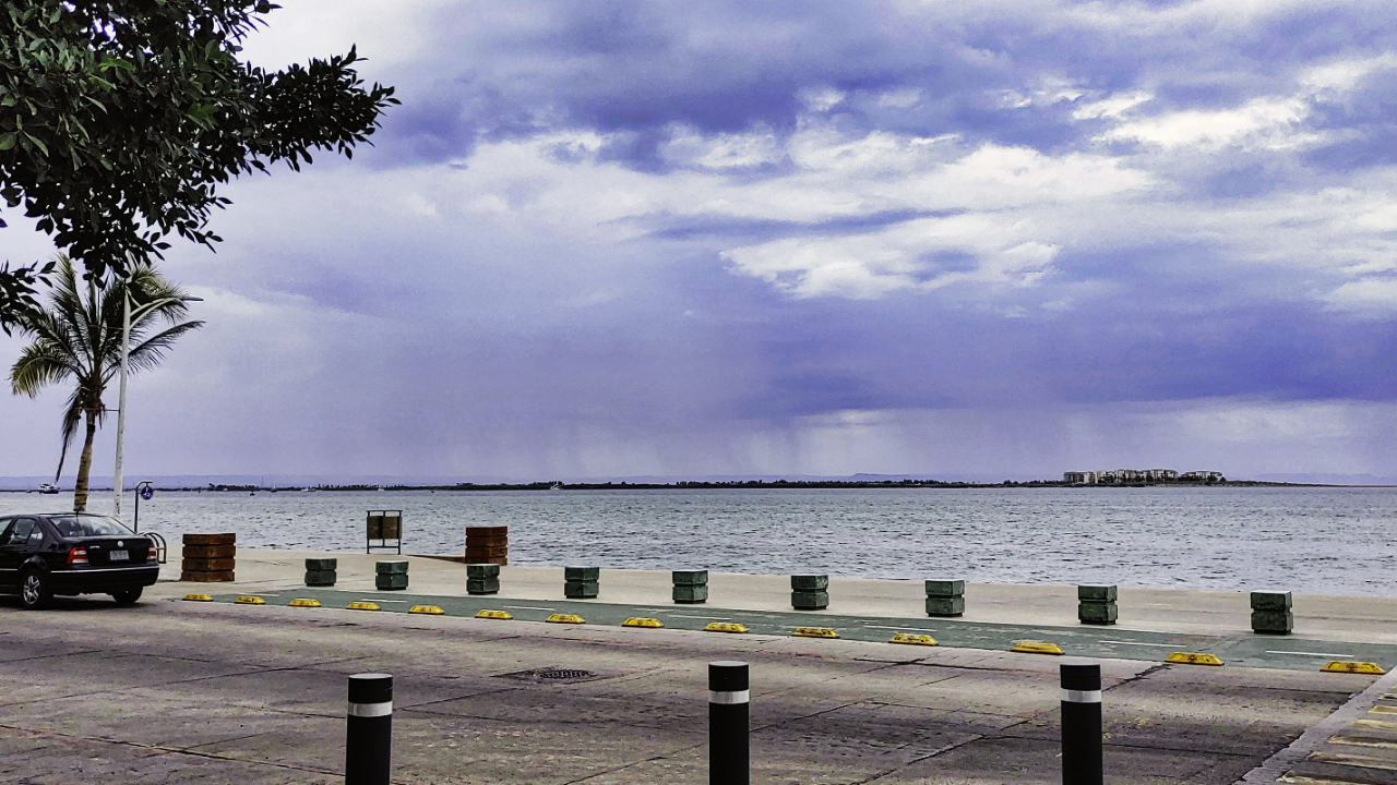 Late afternoon rain. Yes, technically it IS raining in La Paz, but it’s WAY WAY WAY OVER THERE about 8-10 miles away!
