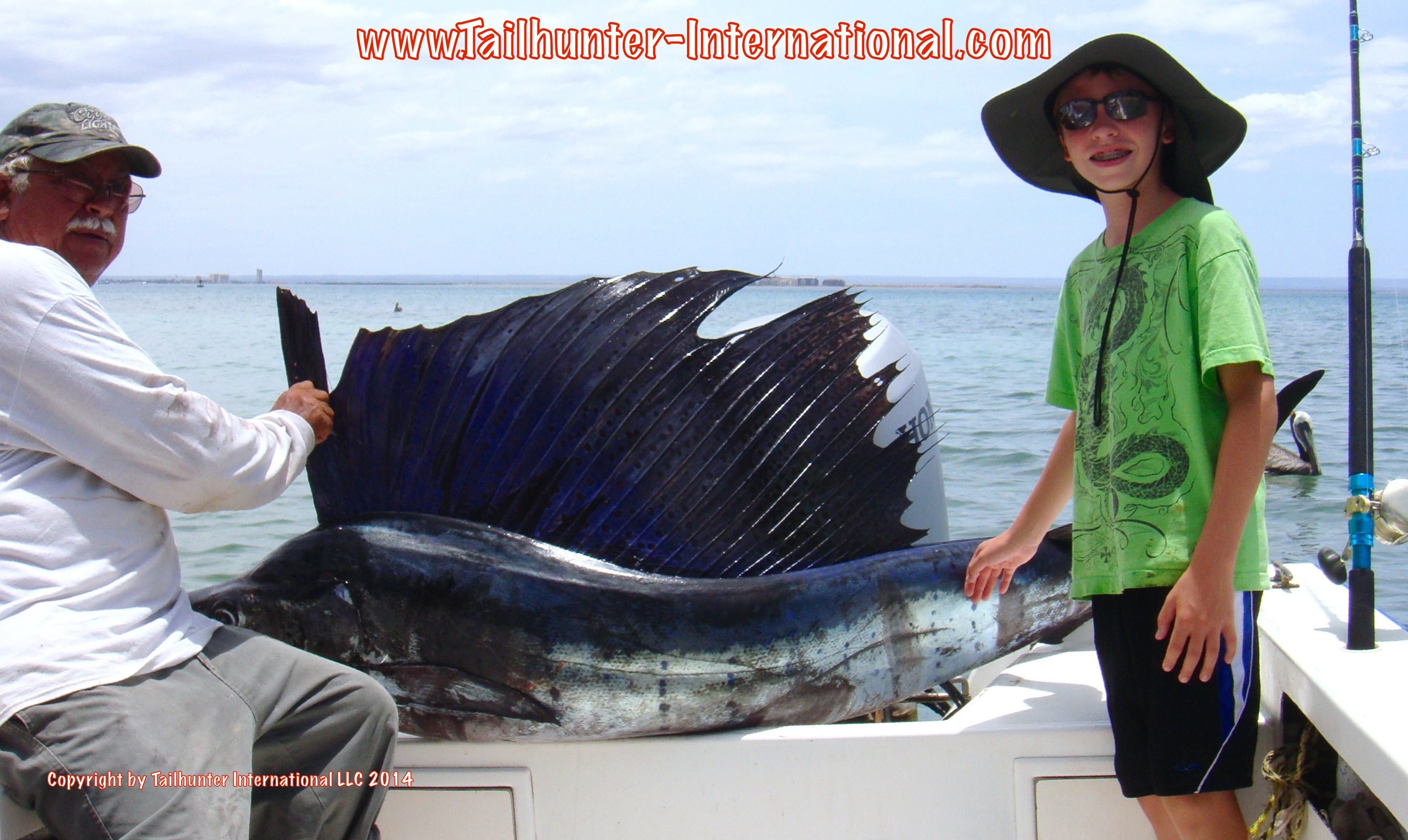 Three years ago when he was 9 years-old, Garrett Santana came down to fish with us and got into some nice dorado. He came to visit us again this past week and not only caught a mess of dorado, but also put the wood to this huge sailfish all by himself and refused any help! Captain Raul helps out. Nicely done, youngster!