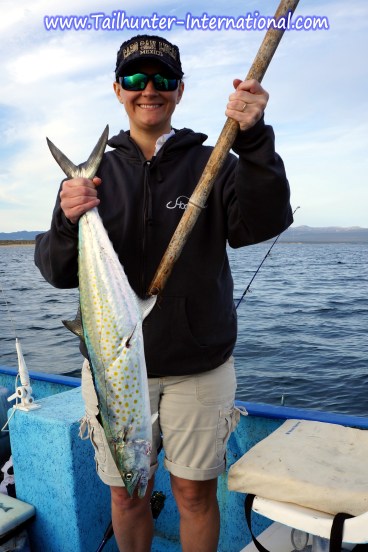 Kristina Ainsworth took this slug yellowtail on a sprinning rod just off Cerralvo Island in shallow water on some live bait.