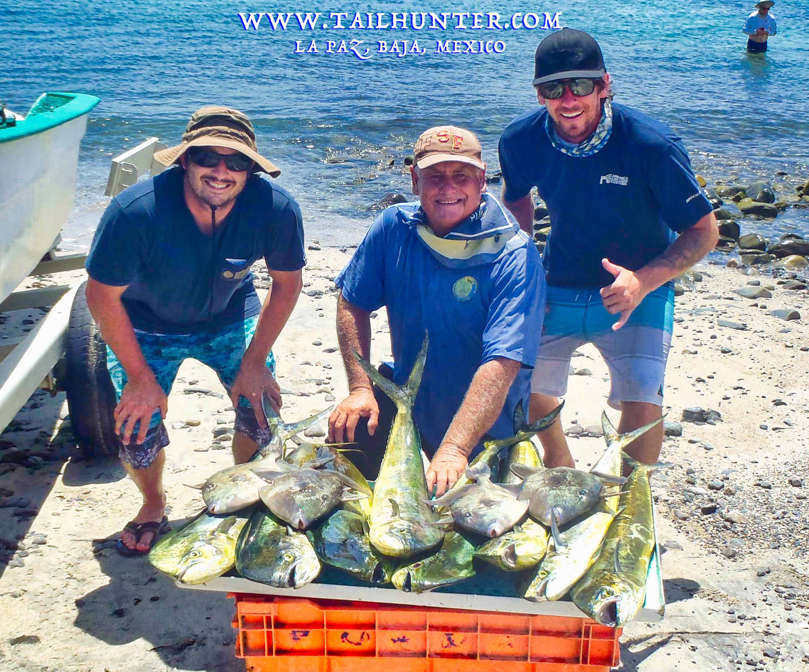 Captain Jorge with two of our besties! Verda Boyd from the bay area has been coming to see us sometimes 3 times a year for many years. She’s teamed up with Pam Bolles who has run the Baja Big Fish Company up in Loreto for almost 25 years and is a well-known flyfishing expert. Two great amigas of Tailhunter.