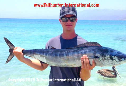 Colin Reed from San Diego with a speedy wahoo he caught off Cerralvo Island where the wahoo bite has been pretty steady for several weeks!